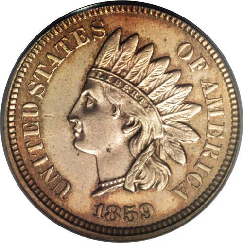 <B>1859 Indian Cent, Judd-227, R.6, MS63 PCGS.</B></I> Regular dies obverse from 1859 paired with a different reverse that features an oak wreath with a broad, ornamented shield (from 1858) at the top. Struck in copper-nickel with a plain edge. The whitish-gray surfaces are surrounded by rich reddish patina around the margins. A bit softly struck on the feather tips, and showing virtually no signs of reflectivity in the fields of this obvious non-proof pattern.<BR><I>From The Jones Beach Collection.</B></I><BR><BR><b>Shipping:</b> Coin/Currency (<a target="_blank" href="http://www.heritageauctions.com/common/shipping.php">view shipping information</a>)