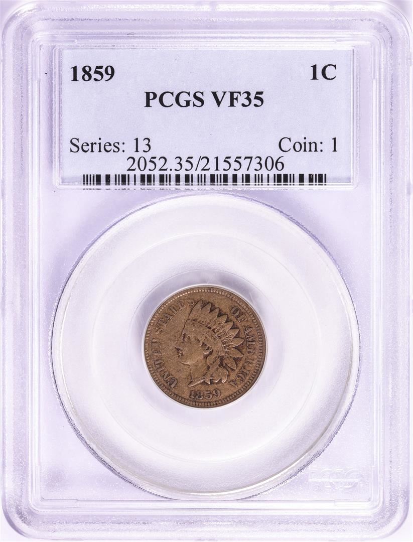 One 1859 Indian Head Cent Coin PCGS VF35. PCGS Graded.