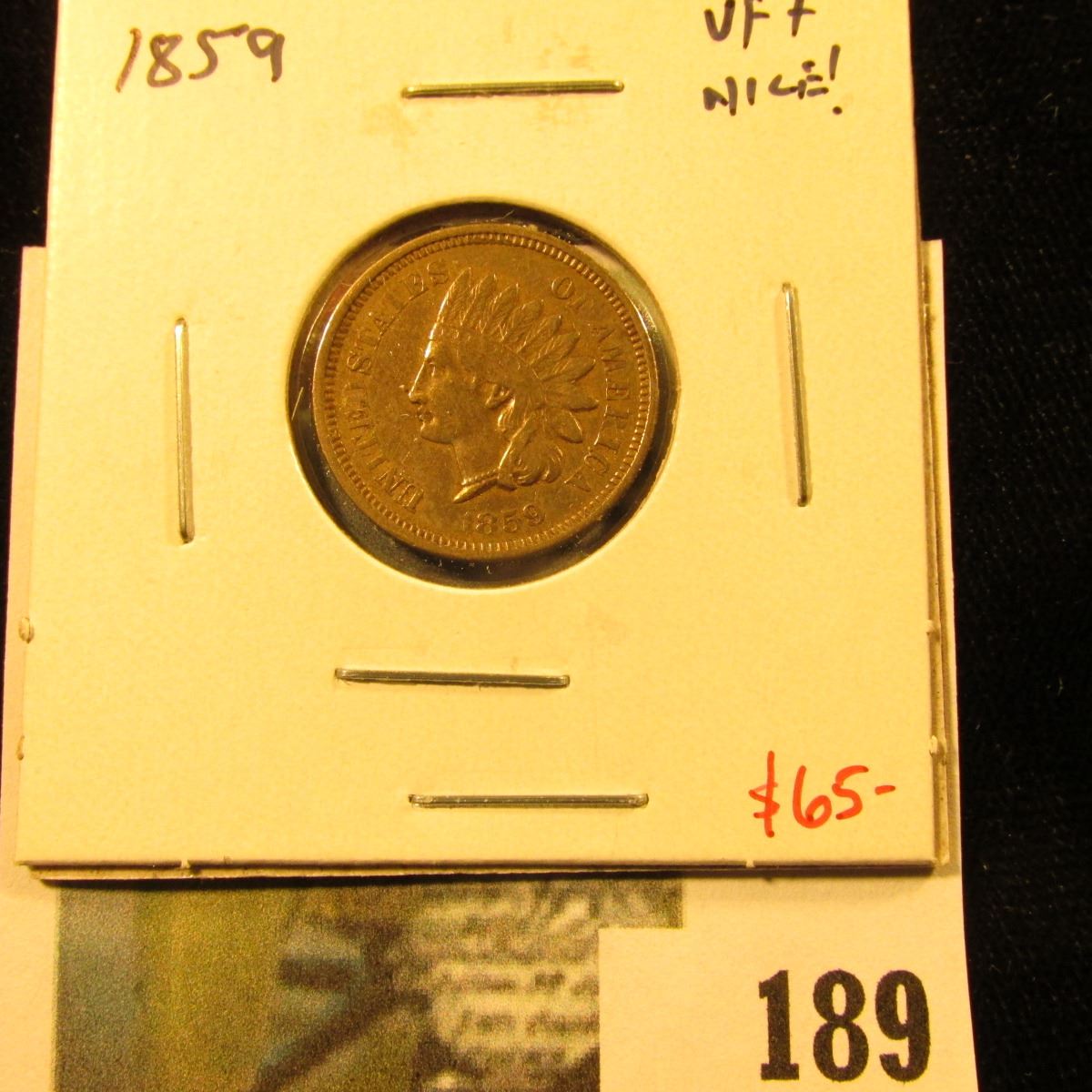 1859 Indian Head Cent, VF+, nice and sharp! Value $65
