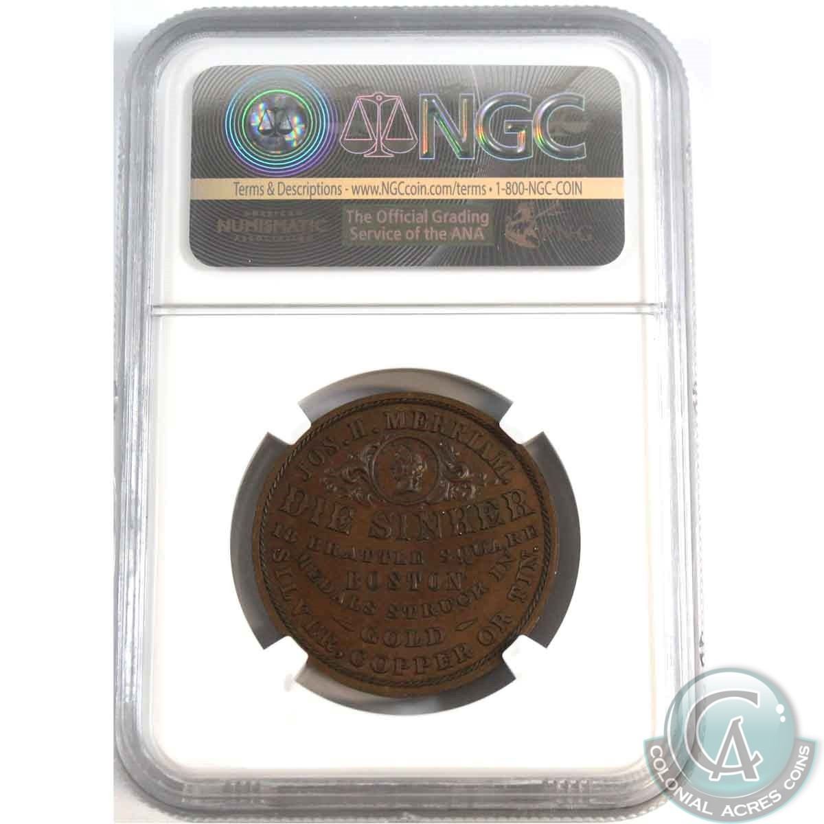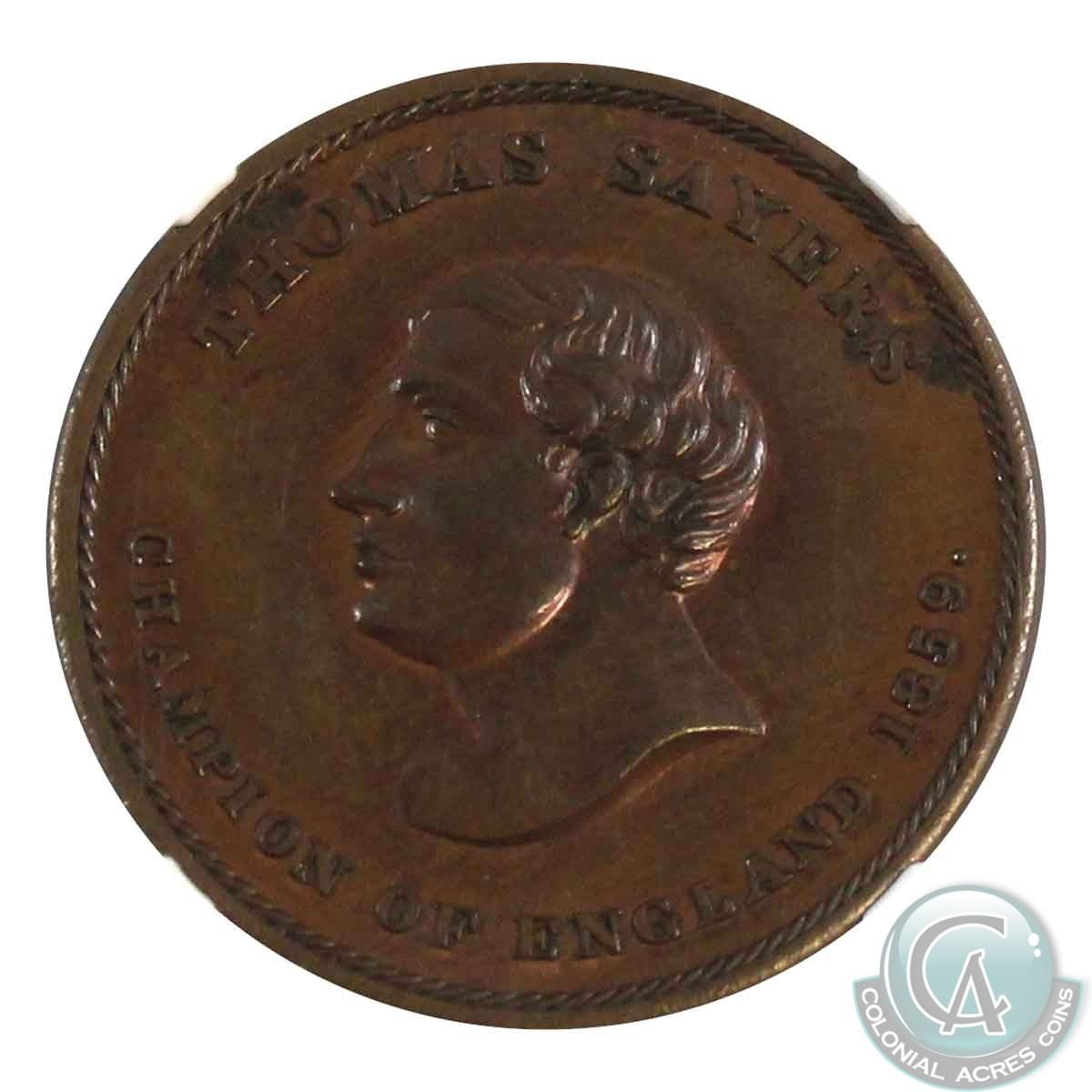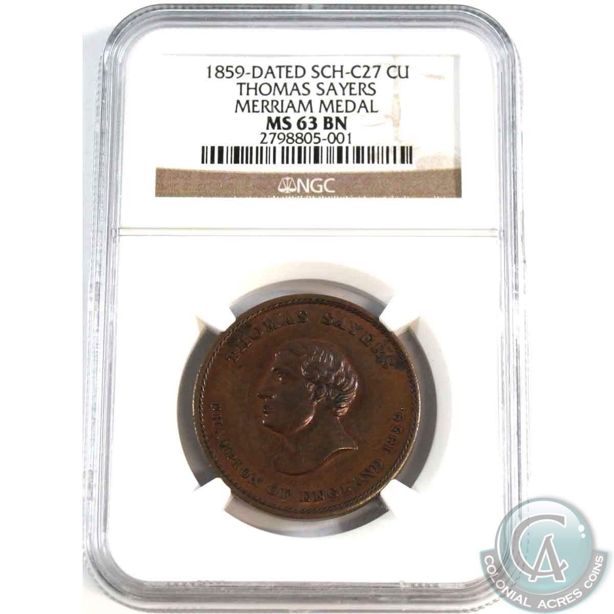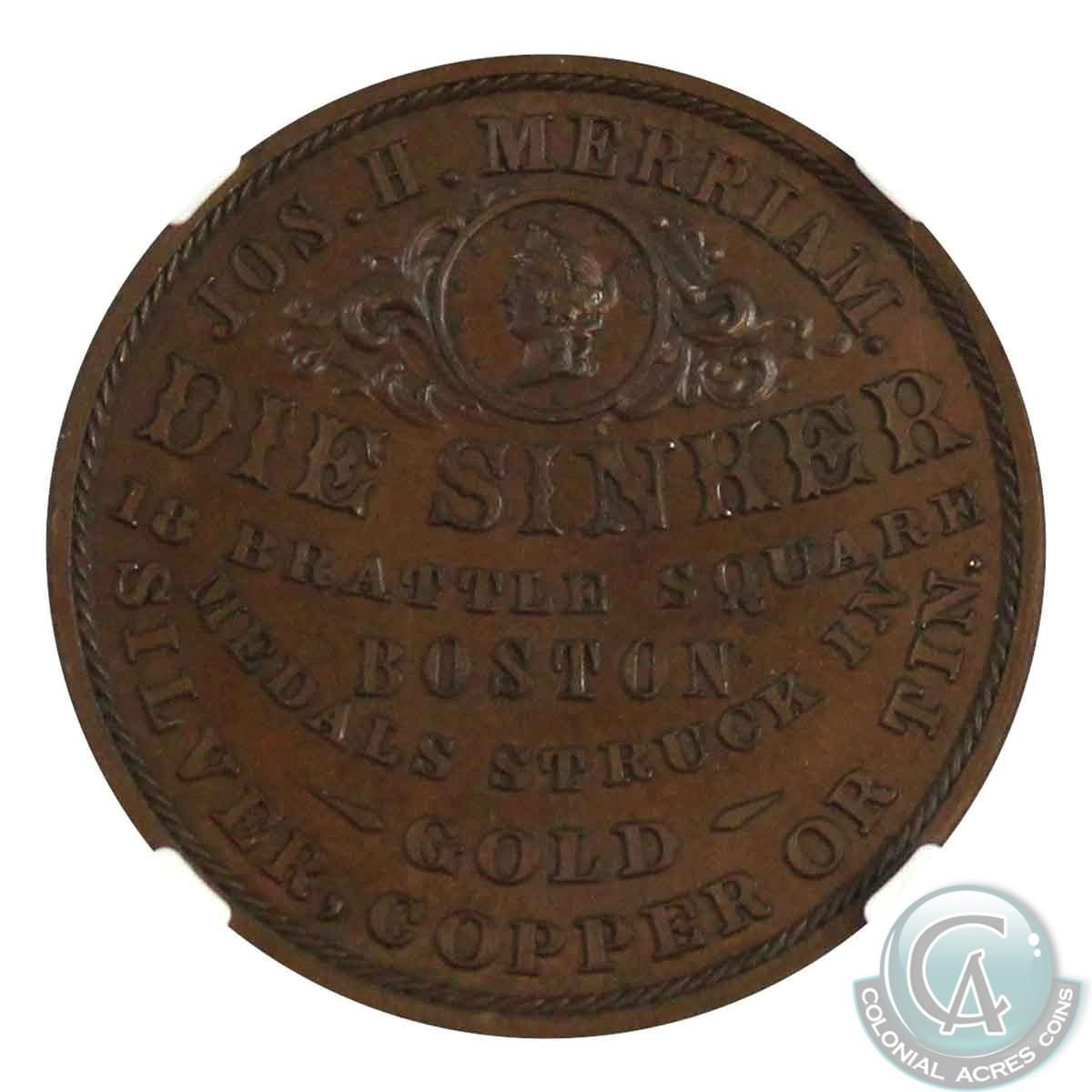 1859 Joseph. H Merriam, Boston MA, Thomas Sayers Copper Medal, (SCH-C27 CU) NGC Certified MS-63 Brown. A rare Medal seldom offered for sale, this example is an attractive chocolate brown with hints of Mint Luster reds throughout.