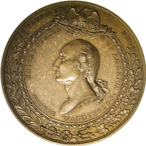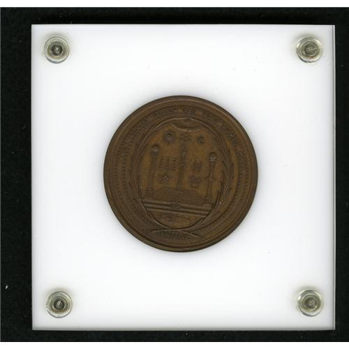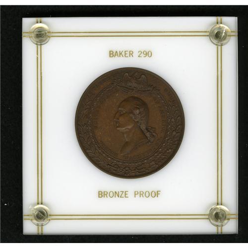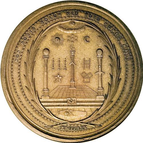 <B>(1859) Masonic Medal With Crystal Palace Obverse PR65 Uncertified.</B></I> Baker-290, R.9 (2-3 known). Bronze. Non Nobis Solum Masonic medal. The obverse has an undraped bust of Washington by A.C. Morin combined with Lovett's Masonic reverse. Only two pieces are known. This is the former Garrett example which was mis-pedigreed in Bowers and Ruddy's Garrett IV Sale. The other is ex: Bushnell, lot 1375, and has not been seen in over a century. This is an impressive piece with rich reddish-brown surfaces and an equally impressive pedigree.<BR><I>Ex: W.E. Woodward's 46th Sale (not 69th, as listed in Rulau), lot 792; to T. Harrison Garrett; Garrett IV (Bowers and Ruddy, 3/81), lot 1840; Gilbert Steinberg and Herman Halpern Collections (Stack's, 5/92), lot 111.</B></I>
