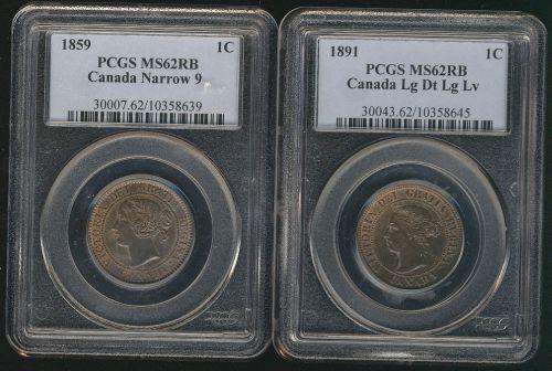 1859 Narrow "9", 1891 Large date Large leaves both coins are PCGS graded MS62 red/brown. Two nice examples.
