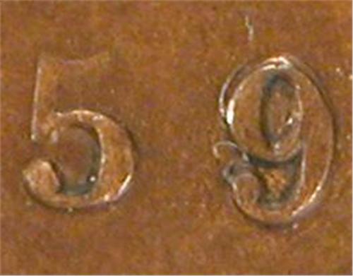 1859 Narrow 9 Double Punched Variation (Tripled 9) ICCS VF-30. This appears to be a Very Low 9 over a Low 9 over a Normal 9