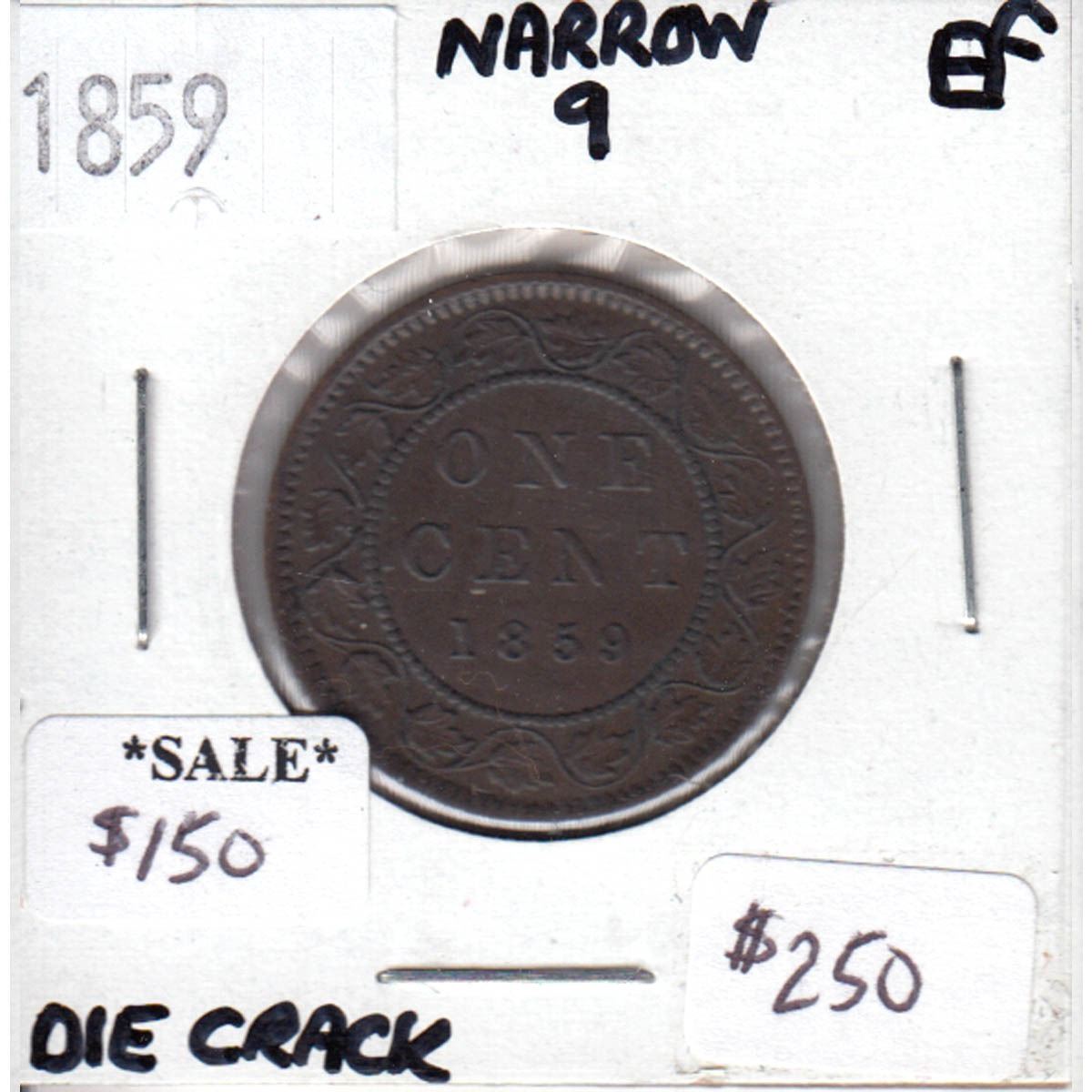 1859 Narrow 9 Die Crack Canada 1-cent Extra Fine (EF-40)