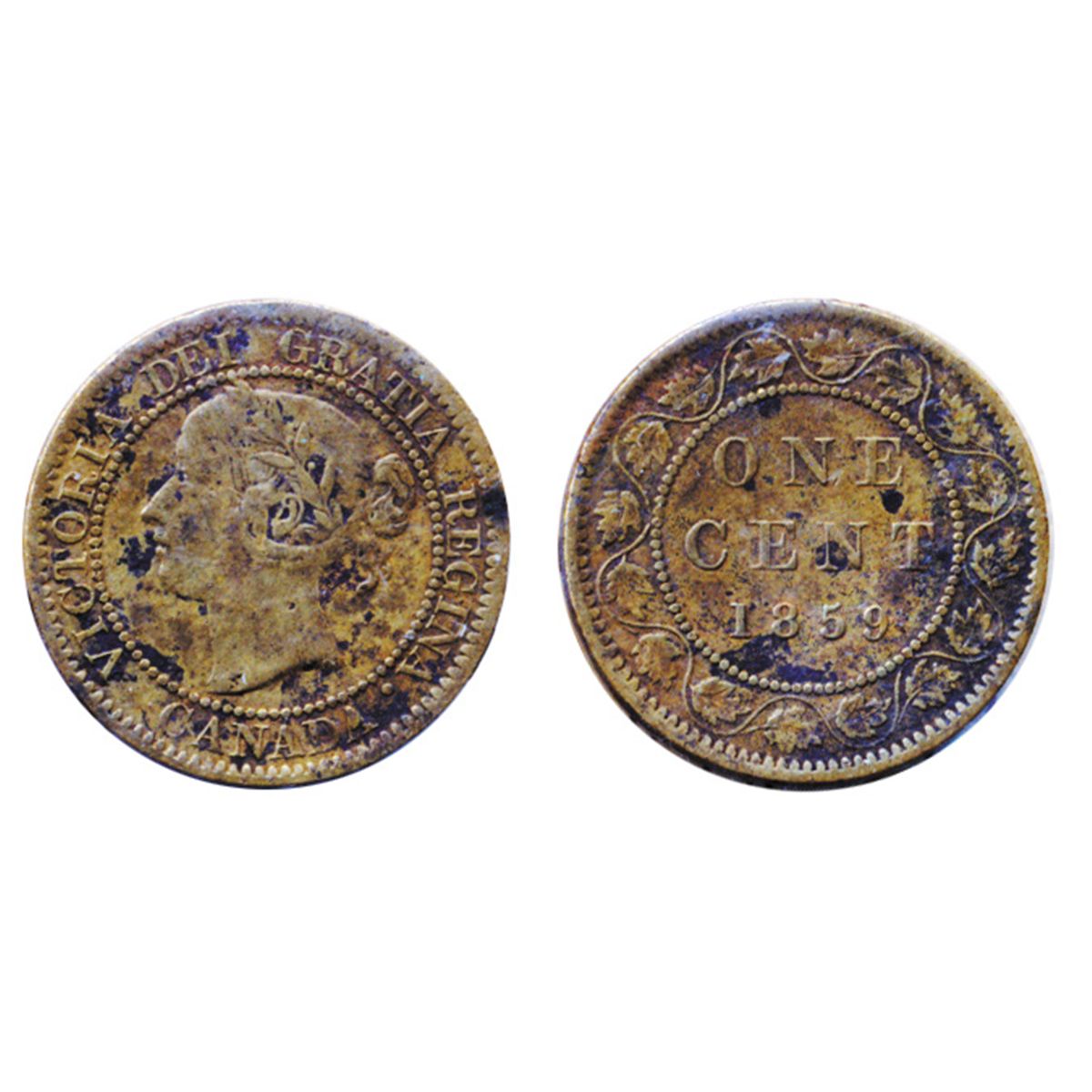 1859, Narrow 9. ICCS Fine-12. Designated ‘BRASS’ by ICCS. Some minor spots of corrosion. The rare variety.