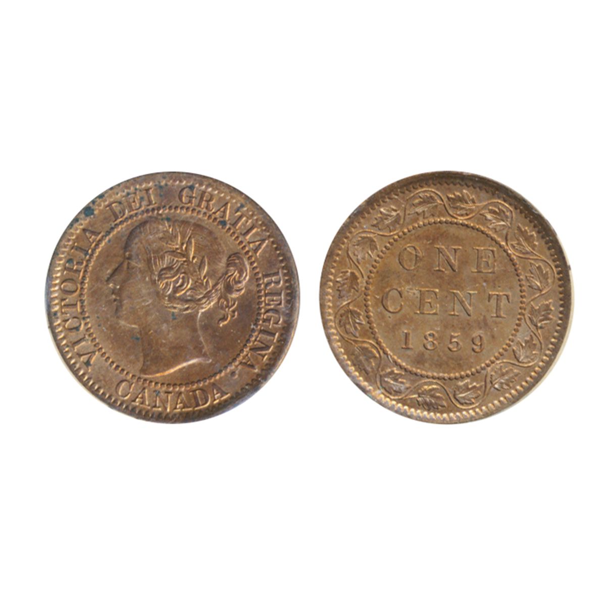 1859, Narrow 9. ICCS Mint State-63. Red. 70% red luster.
