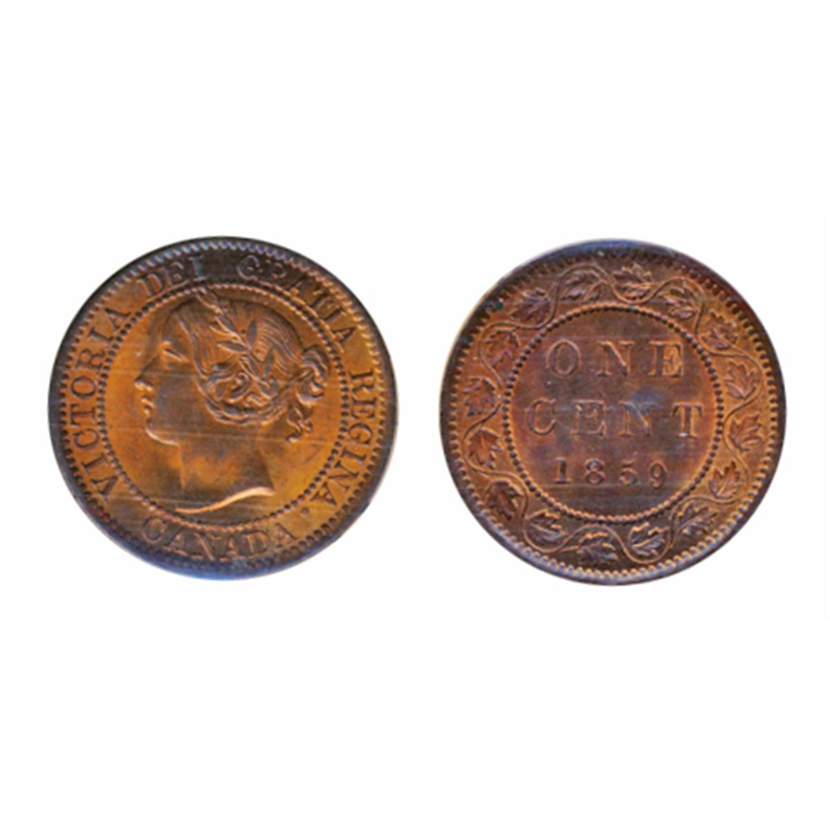 1859, Narrow 9. ICCS Mint State-63. Red-Brown. 40% red luster.
