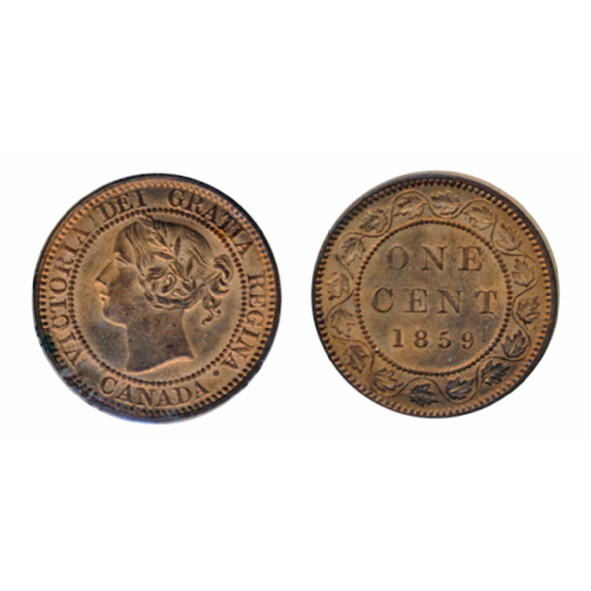 1859, Narrow 9. ICCS Mint State-64. Red. 80%/70% red luster.