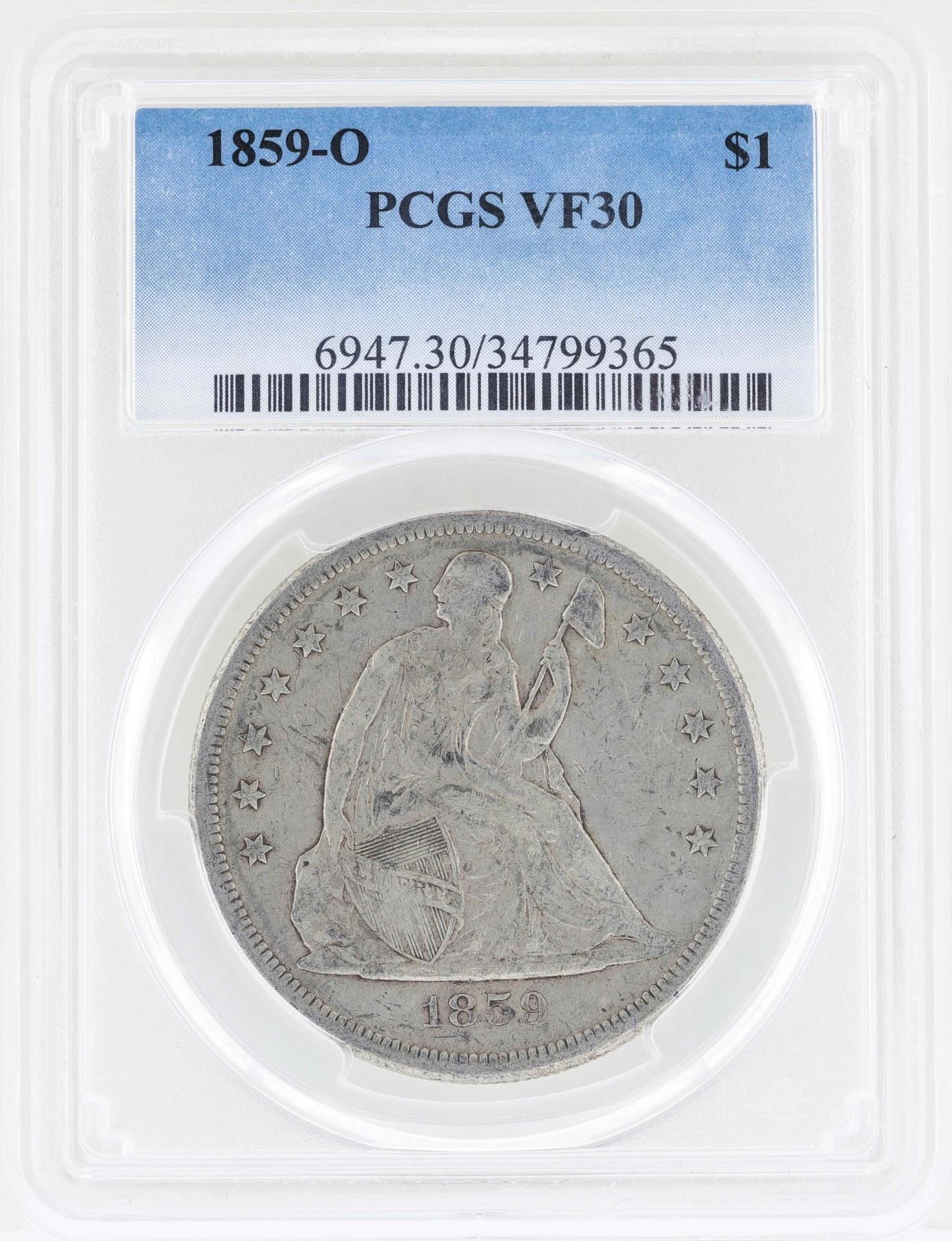 One 1859-O $1 Seated Dollar Coin PCGS VF30.