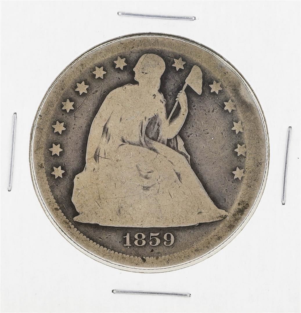 One 1859-O $1 Seated Liberty Silver Dollar Coin.