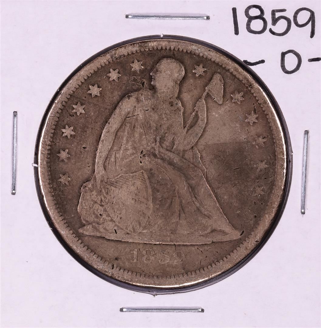 One 1859-O $1 Seated Liberty Silver Dollar Coin.