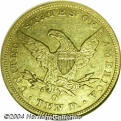 <table><tr><td><table><tr><td>1859-O $10 AU55 NGC. The 1859-O is the rarest O-mint Eagle and, in fact, is one of the most elusive coins in the entire denomination from 1795 to 1933. Just 2,300 pieces were struck and surviving examples represent only about 2 percent of the original production. No Mint State examples have surfaced over the past few decades, with the highest certified example being a lone AU58. Original and uncleaned with coppery patina outlining the devices, the surfaces on this Condition Census representative display only the normal scattered marks in the fields from circulation. The radial details on the stars are virtually all flat, but elsewhere the coin is well defined, which seems to be characteristic of the few examples we have handled. A great opportunity for the collector of Southern gold. Population: 5 in 55, 1 finer (4/04). <BR><BR><B>Important notice:</B> Heritage usually auctions material at the rate of 200-250 lots per hour. On some occasions eBay Live bid software or the Internet may not be able to keep up with the pace of the auction. We recommend placing a realistic absentee bid now as insurance to avoid disappointment. Occasionally the auctioneer may eliminate or reject an eBay Live bid, and the auctioneer may also reopen a lot after the close of the eBay live bidding (usually because we missed an audience bid), and may reject your bid even if it shows you as the winning bidder. By bidding via eBay Live, you agree that Heritage may award the lot to another bidder at its sole discretion under the circumstances described above or any other reasonable circumstances. Since eBay bids are not shown to us until we open the lot on the floor, we treat those bids just like floor bids. In most cases the floor responds before the eBay bid is presented to us, due to Internet lag time, so for consistency we have made it a policy that floor bids are always considered first over tie eBay live bids. Also please note that all Heritage lots purchased through eBay Live carry a 20% Buyer's Premium. Please make sure you read the Terms and Conditions before you bid. <BR><BR><B>IMPORTANT ANNOUNCEMENT ABOUT RESERVES:</B> Heritage now divulges all reserves on its web site 7 days before every auction. If you want to know whether the reserve on this lot has been met, and if not, what the reserve amount is, please visit this lot page on the HeritageCoin.com web site, or email: bid@HeritageGalleries.com </span></font></td></tr></table></td></tr></table>