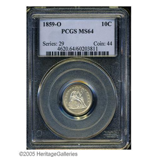 1859-O 10C MS64 PCGS. Seated Dime production at the N 1859-O[10C] MS64 PCGS.