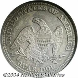 <table><tr><td><TABLE cellSpacing=0 cellPadding=0 width="100%" bgColor=#000000 border=0><TBODY> <TR><TD width="100%"><TABLE cellSpacing=1 cellPadding=3 width="100%" border=0><TBODY><TR><TD width="100%" bgColor=#79735c><FONT face=arial color=#ffffff size=3><B>Description</B> </FONT></TD></TR><TR><TD width="100%" bgColor=#ffffff><FONT face=arial size=2><B>1859-O 25C MS65 NGC.</B></I> Deep orange, gold, and mauve-rose colors bathe this beautifully preserved and original Gem. Satiny luster shimmers across the undisturbed surfaces. Well struck except for the final star. A difficult New Orleans issue to locate in Uncirculated grades, and unquestionably rare as a Gem. When David Akers cataloged this piece, he said it was "undoubtedly one of the four or five finest known examples of the issue." Population: 4 in 65, 0 finer (11/03).<BR><I>Ex: John Jay Pittman Collection (Akers, 5/1998), lot 1339, which realized $7,700. Purchased by Pittman from David Bullowa for $7.25 on 9/27/1947.</B></I> </FONT></TD></TR></TBODY></TABLE></TD></TR></TBODY></TABLE><BR><A name=PricesRealized></A><TABLE cellSpacing=0 cellPadding=0 width="100%" bgColor=#000000 border=0><TBODY><TR><TD width="100%"><TABLE cellSpacing=1 cellPadding=3 width="100%" border=0><TBODY><TR><TD width="100%" bgColor=#79735c><A name=PR><FONT face=arial color=#ffffff size=3><B>Previous Prices from Heritage Auctions</B> </FONT></A></TD></TR><TR><TD bgColor=#f6f6ed><TABLE cellSpacing=0 cellPadding=0 width="100%" border=1><TBODY><TR><TD align=middle width="33%"><B>Date</B></TD><TD align=middle width="33%"><B>Service</B></TD><TD align=middle width="33%"><B>Price</B></TD></TR><TR bgColor=whitesmoke><TD width="33%"><B>08/08/2001</B></TD><TD width="33%">PCGS</TD><TD width="33%">$6,900.00</TD></TR></TBODY></TABLE></TD></TR><TR><TD bgColor=#ffffff><FONT face=arial size=1 ?>PLEASE NOTE: All prices realized reflect the final hammer price PLUS the buyer's premium in auctions that charge a buyer's premium. Each item has a notation at the top of the listing indicating whether that lot included a buyer's premium. Example: A item that sells with a final hammer price of $100 and a 20% buyer's premium will display with a price realized of $120. All information listed is intended to be as accurate as possible, but errors are possible. Please use this guide carefully and inform us of any inaccuracies. </FONT></TD></TR></TBODY></TABLE></TD></TR></TBODY></TABLE><BR><TABLE cellSpacing=0 cellPadding=0 width="100%" bgColor=#000000 border=0><TBODY><TR><TD width="100%"><TABLE cellSpacing=1 cellPadding=3 width="100%" border=0><TBODY><TR><TD width="100%" bgColor=#79735c colSpan=6><FONT face=arial color=#ffffff size=3><B>Price Guide*</B> </FONT></TD></TR><TR bgColor=#f6f6ed><TD align=middle><B>Grade</B> </TD><TD align=middle><B>Coin World<BR>(Trends)</B> </TD><TD align=middle><B>Numismedia<BR>Retail</B> </TD><TD align=middle><B>Numismedia<BR>Wholesale</B> </TD><TD align=middle><B>Coin<BR>Universe</B> </TD><TD align=middle><B>Heritage<BR>Value Index</B> </TD></TR><TR bgColor=#ffffff><TD align=middle>64</TD><TD align=right>$10,000.00</TD><TD align=right>---</TD><TD align=right>$4,125.00</TD><TD align=right>---</TD><TD align=right>$4,835.00</TD></TR><TR style="FONT-WEIGHT: bold" bgColor=#cccfdd><TD align=middle>65</TD><TD align=right>---</TD><TD align=right>---</TD><TD align=right>$7,675.00</TD><TD align=right>---</TD><TD align=right>$9,000.00</TD></TR><TR bgColor=#ffffff><TD align=middle>66</TD><TD align=right>---</TD><TD align=right>---</TD><TD align=right>---</TD><TD align=right>---</TD><TD align=right>---</TD></TR><TR bgColor=#ffffff><TD colSpan=6><FONT size=1>*All information listed is intended to be as accurate as possible, but errors are possible. No item may be returned or refused based on this information which is provided as a service to our customers. You should contact each pricing source directly to determine the accuracy of this information. </FONT></TD></TR></TBODY></TABLE></TD></TR></TBODY></TABLE><BR><TABLE cellSpacing=0 cellPadding=0 width="100%" bgColor=#000000 border=0><TBODY><TR><TD width="100%"><TABLE cellSpacing=1 cellPadding=3 width="100%" border=0><TBODY><TR><TD width="100%" bgColor=#79735c><FONT face=arial color=#ffffff size=3><B>Population Guide</B> </FONT></TD></TR><TR bgColor=#ffffff><TD align=middle><!-- Begin Output of Population Grid--><TABLE cellSpacing=0 cellPadding=0 width="100%" border=0><TBODY><TR><TD vAlign=center><TABLE cellSpacing=0 width="100%" border=1 cellsadding="3"><TBODY><TR><TD vAlign=center><TABLE cellSpacing=0 cellPadding=3 width="100%" border=1><TBODY><TR><TD vAlign=center align=middle bgColor=#f0f1e8 colSpan=2 <CENTER><FONT face=Arial size=2><B>PCGS Pop </B></FONT><CENTER></CENTER></TD><TD vAlign=center align=middle bgColor=#f0f1e8 colSpan=2><CENTER><FONT face=Arial size=2><B>NGC Pop</B></CENTER></FONT></TD></TR><TR><TD vAlign=center><FONT face=Arial size=2>(65)</FONT> </TD><TD vAlign=center align=right><FONT face=Arial size=2>1</FONT> </TD><TD vAlign=center><FONT face=Arial size=2>(65)</FONT> </TD><TD vAlign=center align=right><FONT face=Arial size=2>4</FONT> </TD></TR><TR><TD vAlign=center><FONT face=Arial size=2>(>65)</FONT> </TD><TD vAlign=center align=right><FONT face=Arial size=2>0</FONT> </TD><TD vAlign=center><FONT face=Arial size=2>(>65)</FONT> </TD><TD vAlign=center align=right><FONT face=Arial size=2>1</FONT> </TD></TR></TBODY></TABLE></TD></TR></TBODY></TABLE></TD></TR></TBODY></TABLE><!-- End Output of Population Grid--></TD></TR></TBODY></TABLE></TD></TR></TBODY></TABLE><BR><TABLE cellSpacing=0 cellPadding=0 width="100%" bgColor=#000000 border=0><TBODY><TR> <font color='#000000'><span style='background-color: #FFFFFF'><td bgcolor='#FFFFFE'> Important notice: Heritage usually auctions material at the rate of 200-250 lots per hour. On some occasions eBay Live bid software or the Internet may not be able to keep up with the pace of the auction. We recommend placing a realistic absentee bid now as insurance to avoid di