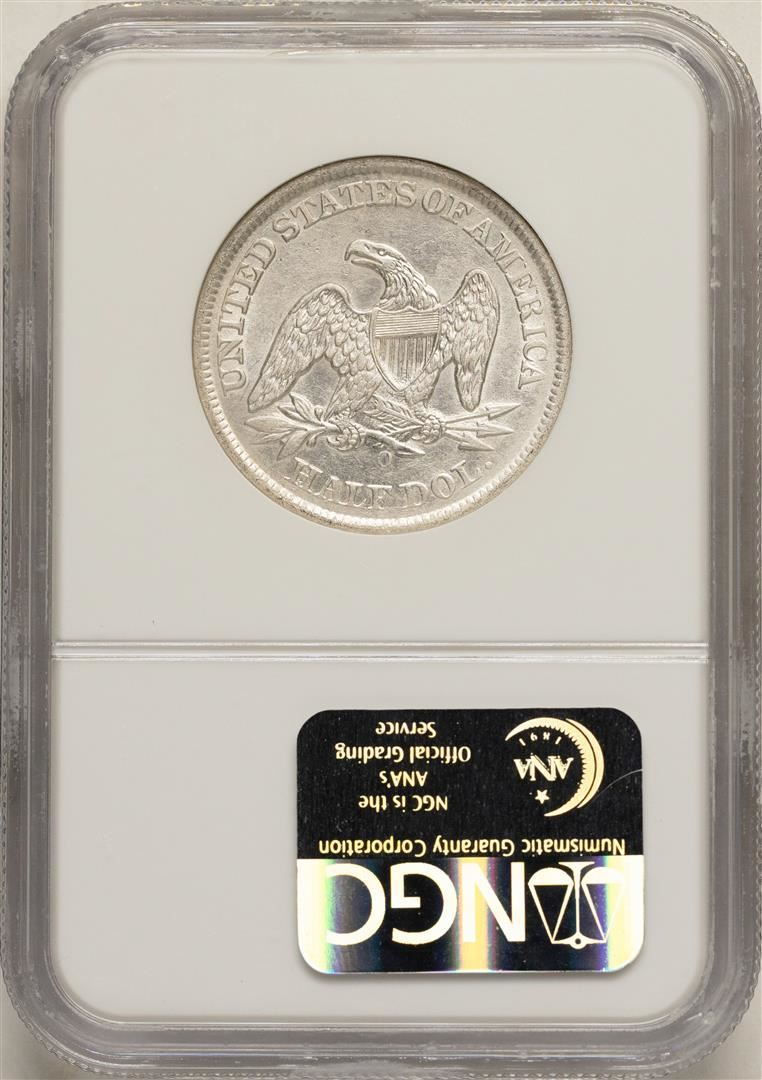 One 1859-O 9 in Border Seated Liberty Half Dollar Coin NGC Shipwreck Effect w/ Book. NGC Certified.