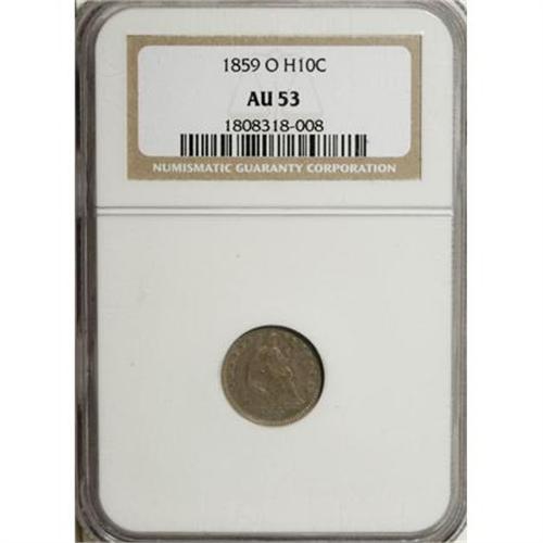 <B>1859-O H10C AU53 NGC.</B></I> NGC Census: (1/83). PCGS Population (1/68). Mintage: 560,000. Numismedia Wsl. Price for NGC/PCGS coin in AU53: $175. (#4370)<BR><BR><B>Coin Engraver:</B> Christian Gobrecht<BR><BR><b>Shipping:</b> Coins & Currency (<a target="_blank" href="http://www.heritageauctions.com/common/shipping.php">view shipping information</a>)
