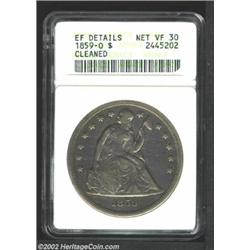 1859-O S$1--Cleaned--ANACS. XF Details, Net VF30. This is a glossy textured example that has retoned