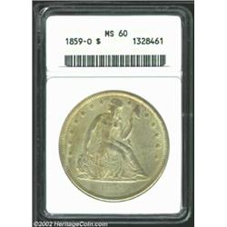 1859-O S$1 MS60 ANACS. Full luster beneath russet toning with a nice strike. Minimally abraded for t