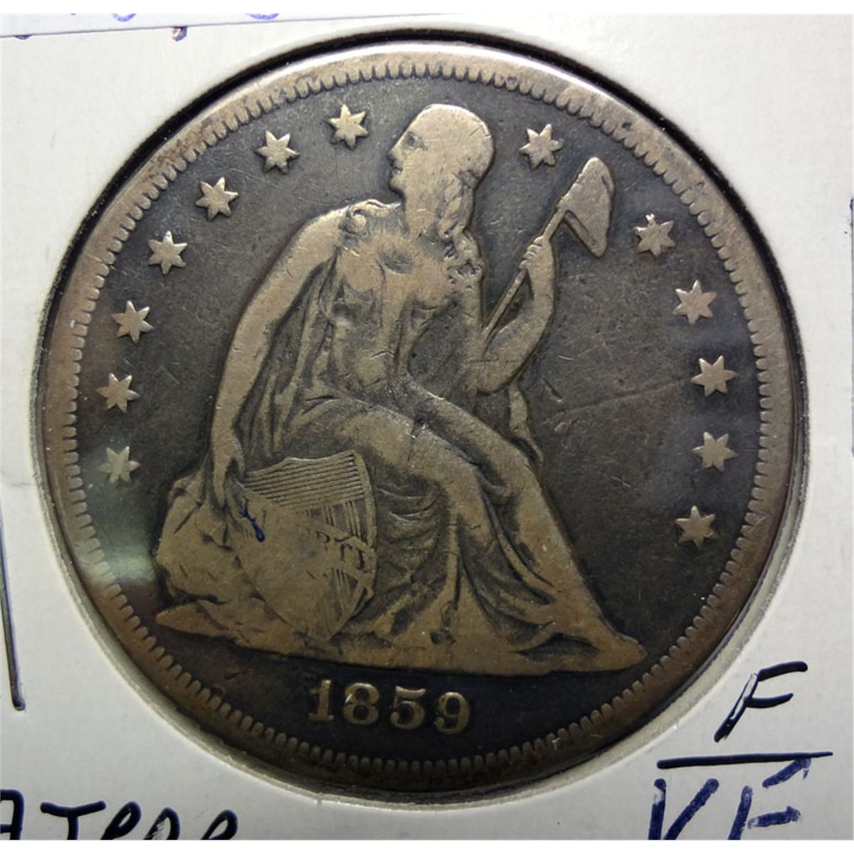 1859-O SEATED DOLLAR F-VF ORIGINAL
