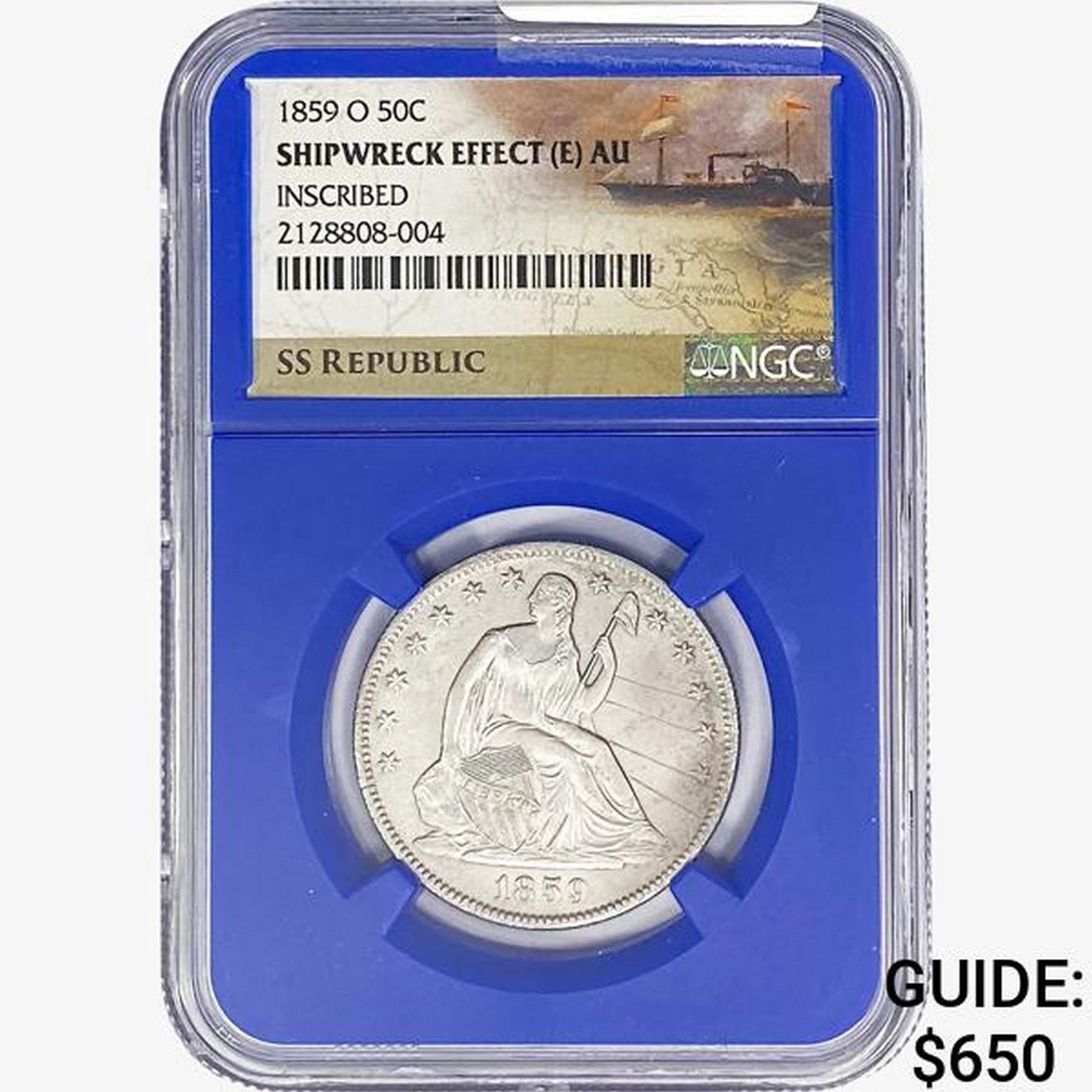 1859-O SL. 50C Shipwreck Effect W/ Book Set NGC UNC