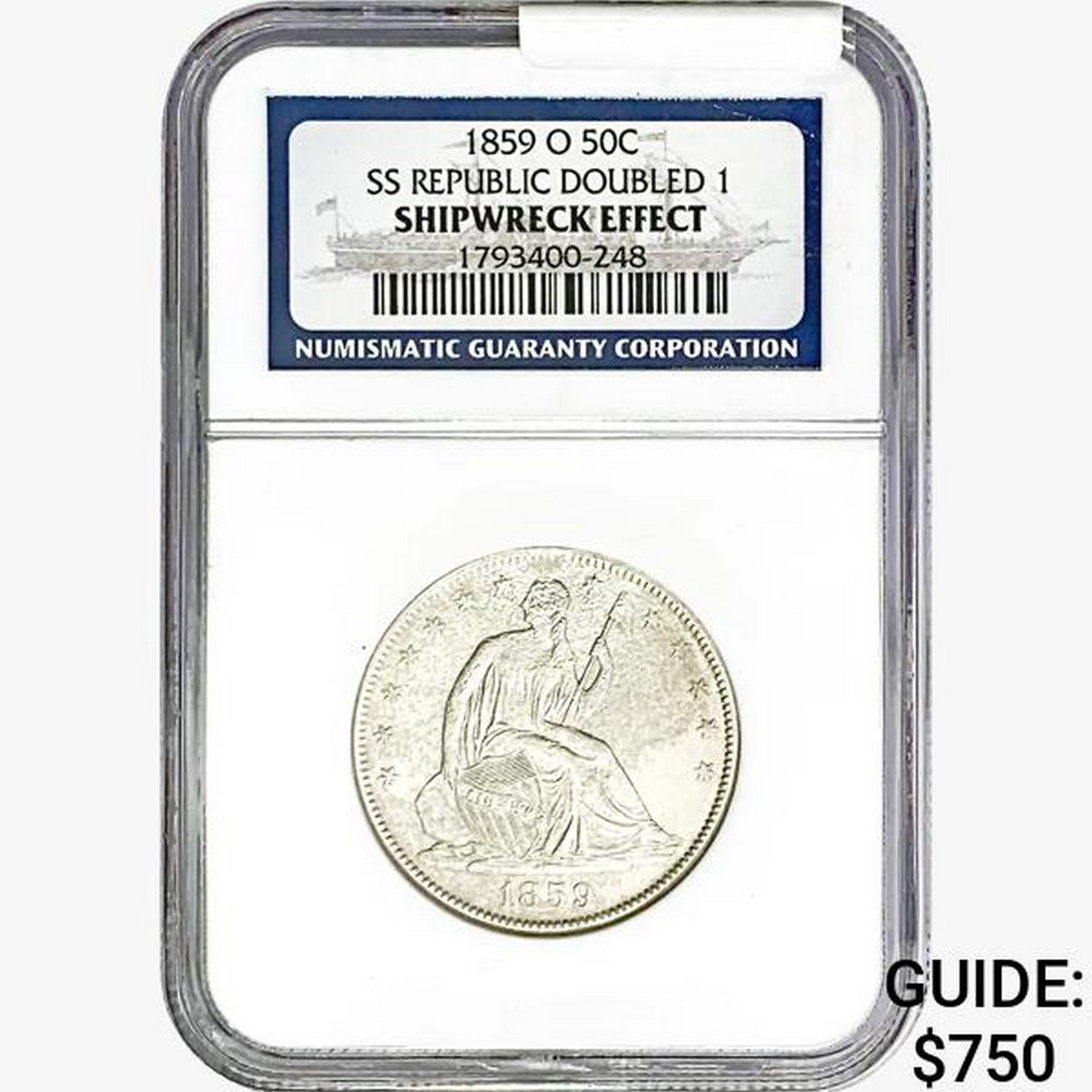 1859-O Seated Lib. 50C NGC Shipwreck Effect SS REP