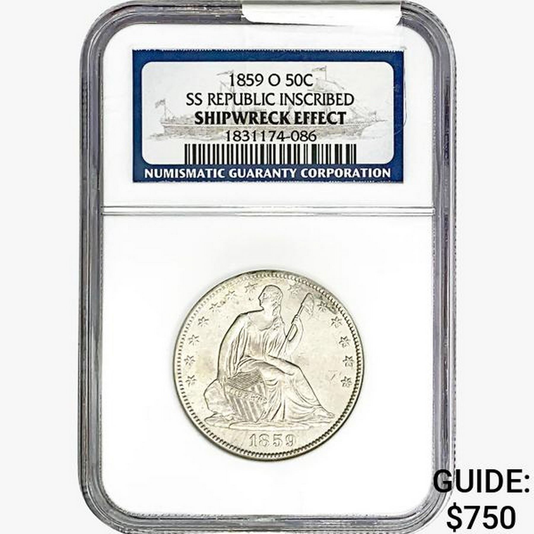 1859-O Seated Lib. 50C NGC Shipwreck Effect SS REP