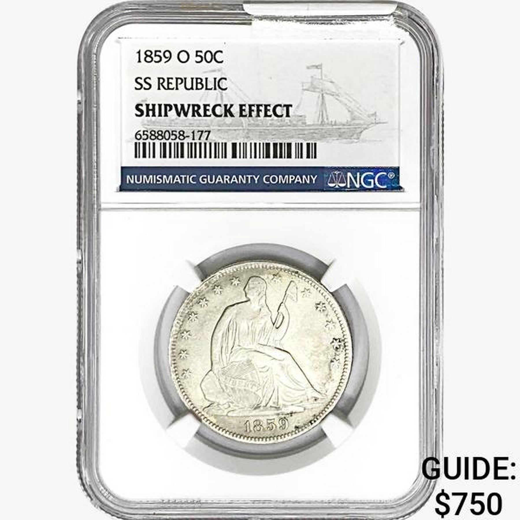 1859-O Seated Lib. 50C NGC Shipwreck Effect SS REP