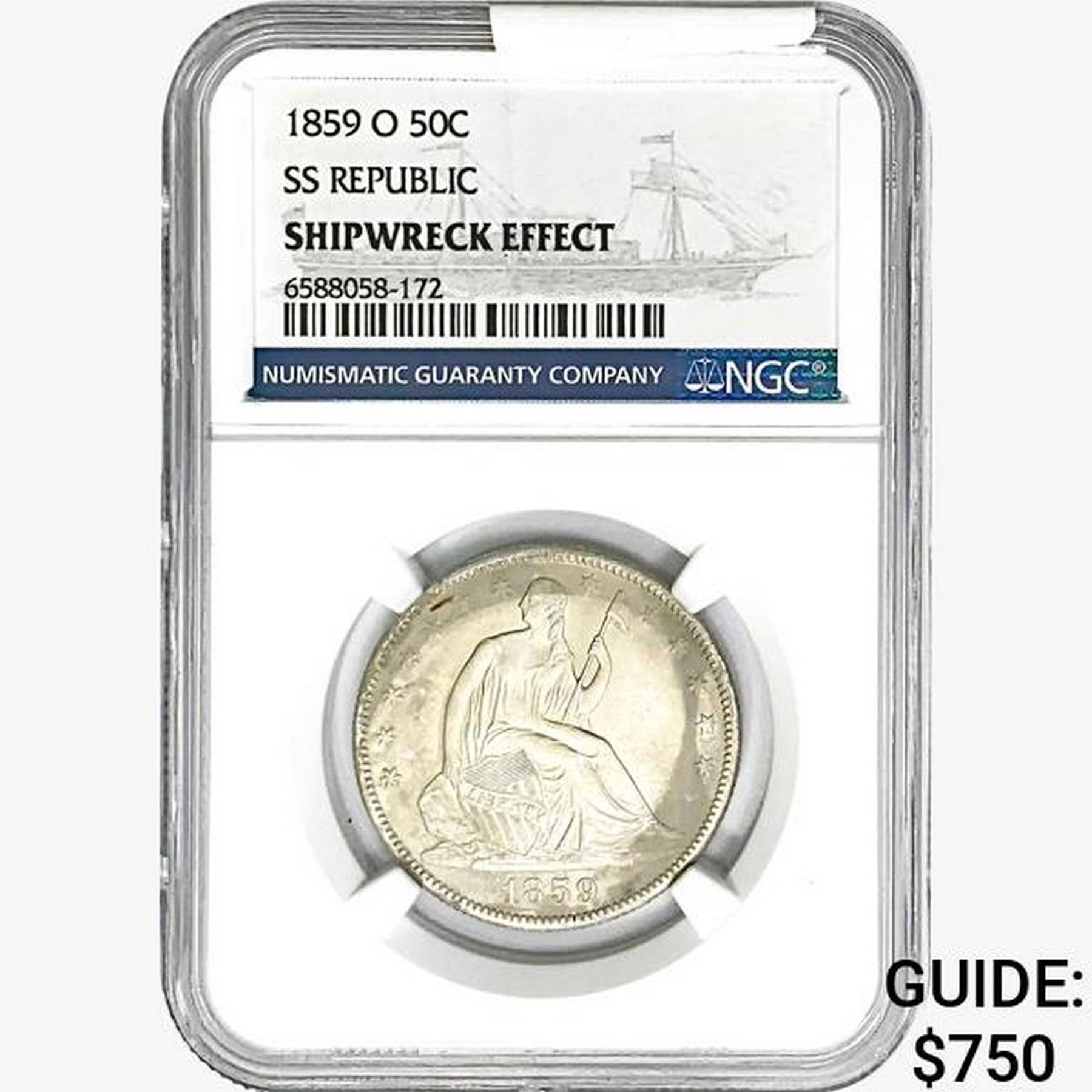1859-O Seated Lib. 50C NGC Shipwreck Effect SS REP