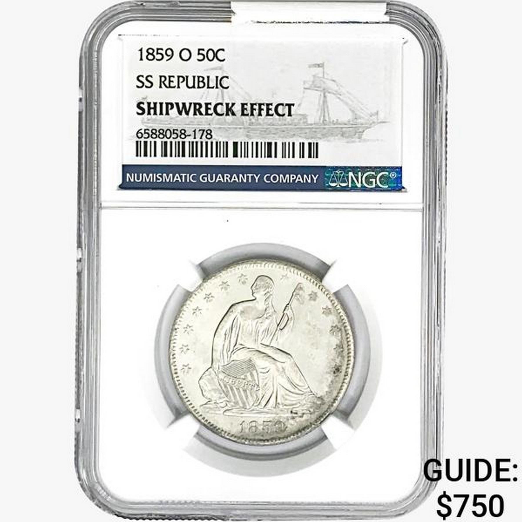 1859-O Seated Lib. 50C NGC Shipwreck Effect SS REP