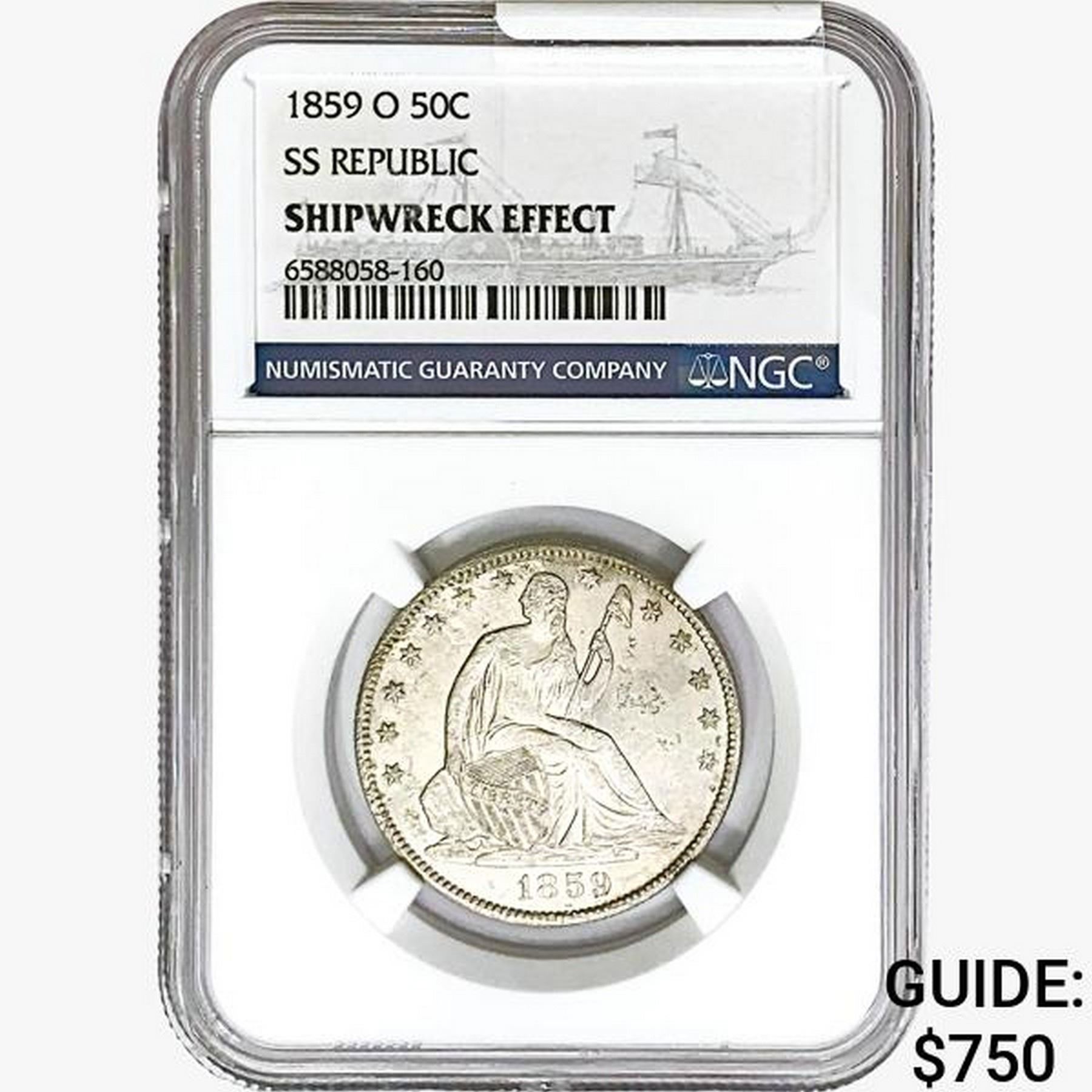 1859-O Seated Lib. 50C NGC Shipwreck Effect SS REP