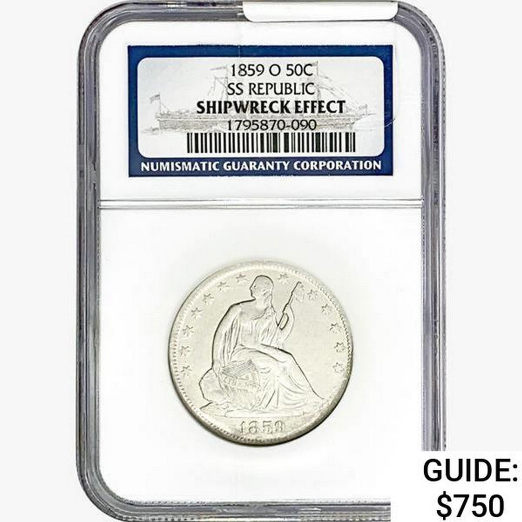 1859-O Seated Lib. 50C NGC Shipwreck Effect SS REP.