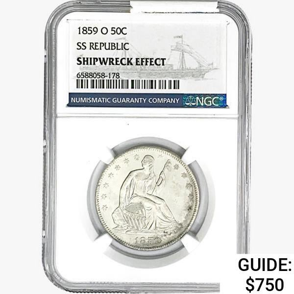 1859-O Seated Lib. 50C NGC Shipwreck Effect SS REP.