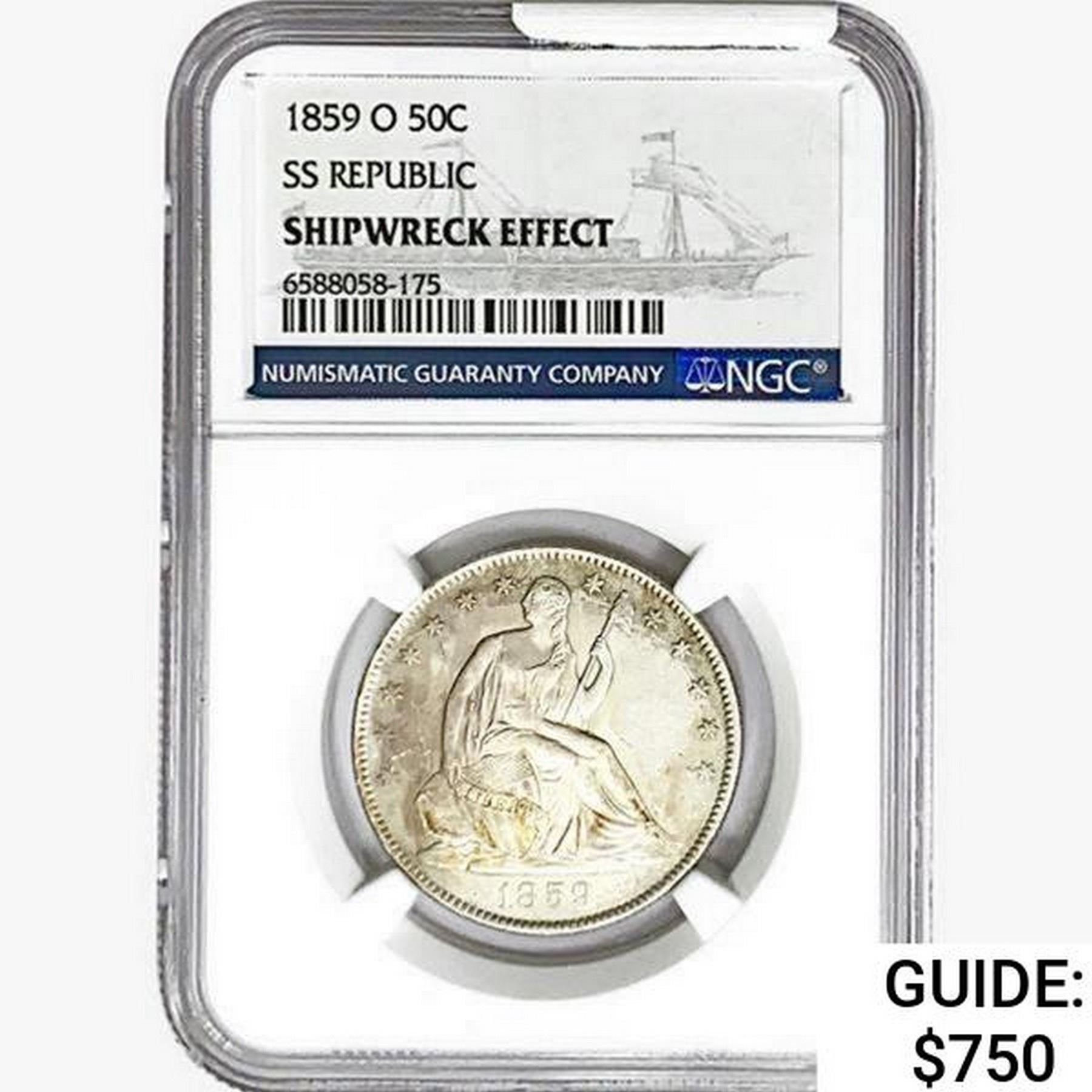 1859-O Seated Lib. 50C NGC Shipwreck Effect SS REP.