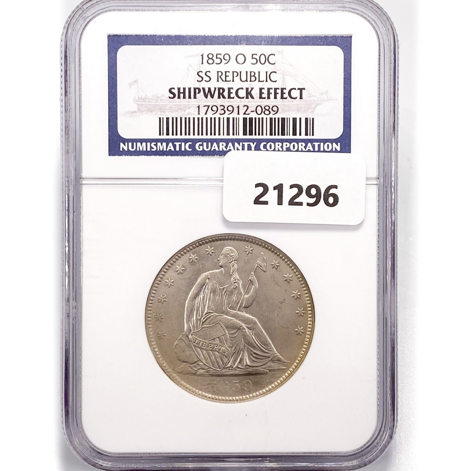 1859-O Seated Lib. 50C NGC Shipwreck SS Rep Bx Set