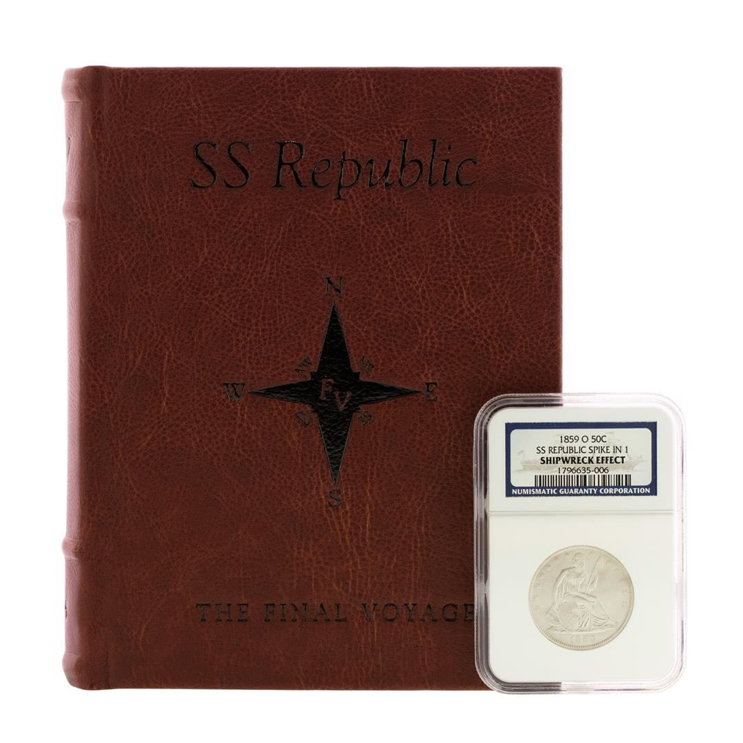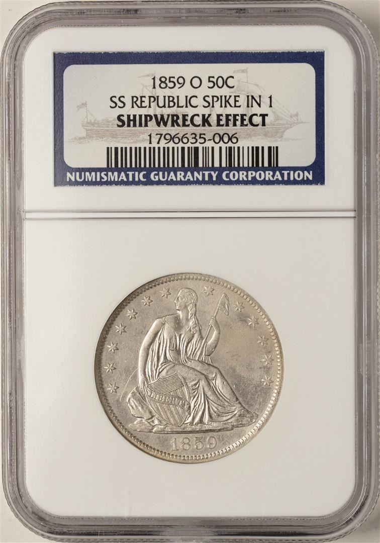 One 1859-O Spike in 1 Seated Liberty Half Dollar Coin NGC Shipwreck Effect w/ Book. NGC Certified.