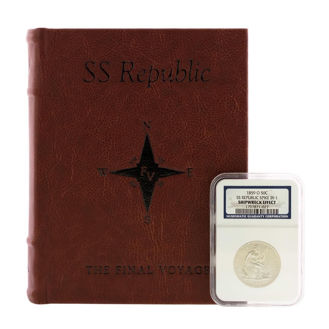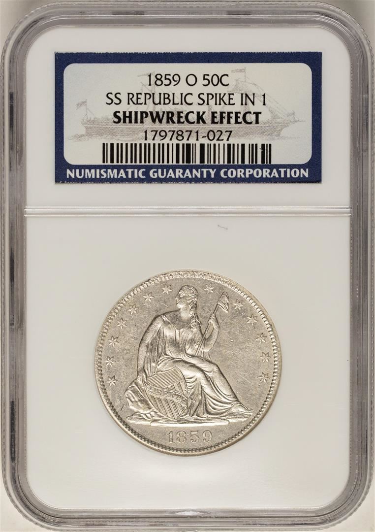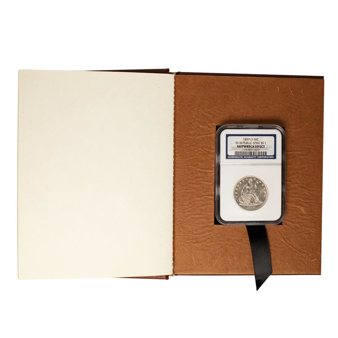 One 1859-O Spike in 1 Seated Liberty Half Dollar Coin NGC Shipwreck Effect w/ Book. NGC Certified.