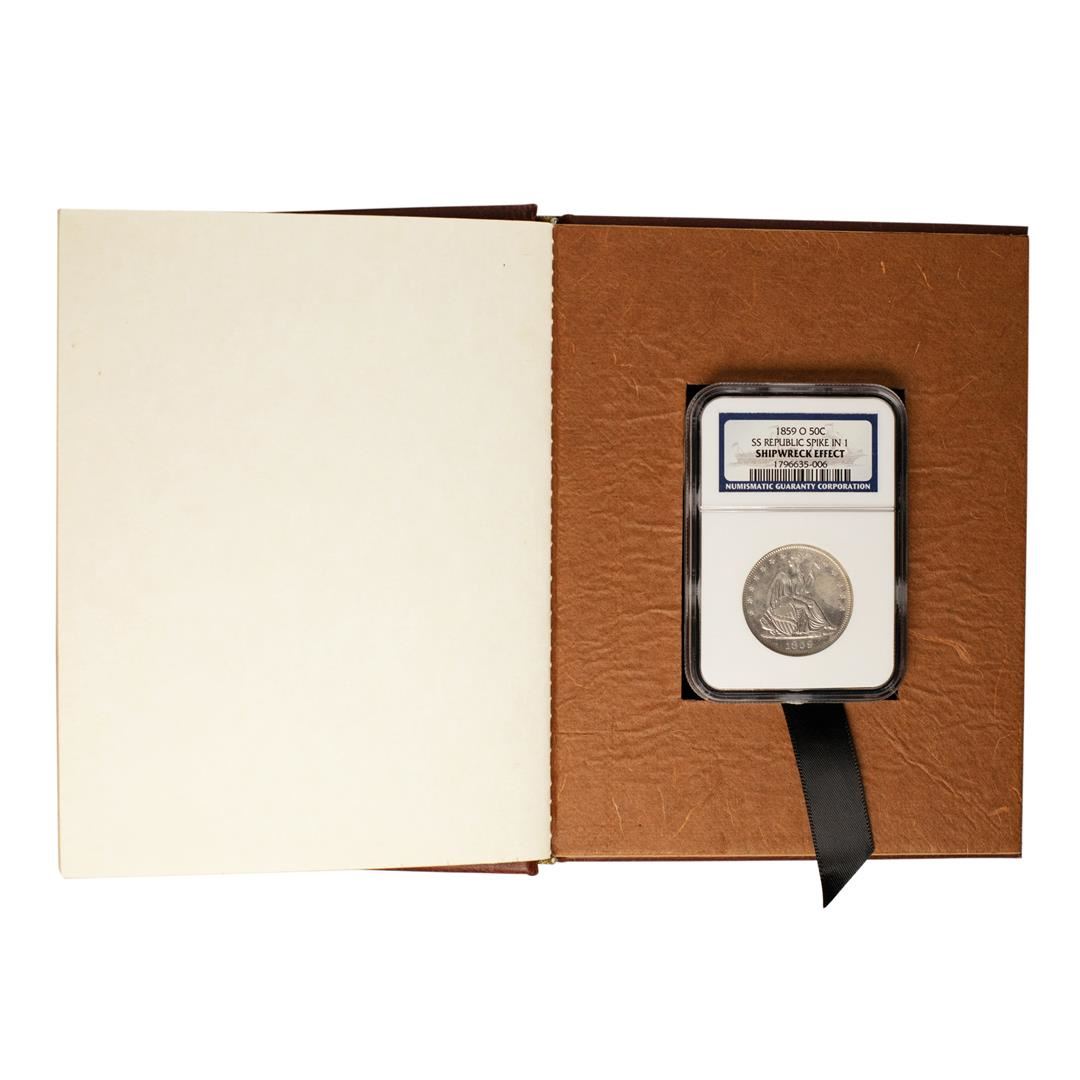 One 1859-O Spike in 1 Seated Liberty Half Dollar Coin NGC Shipwreck Effect w/ Book. NGC Certified.