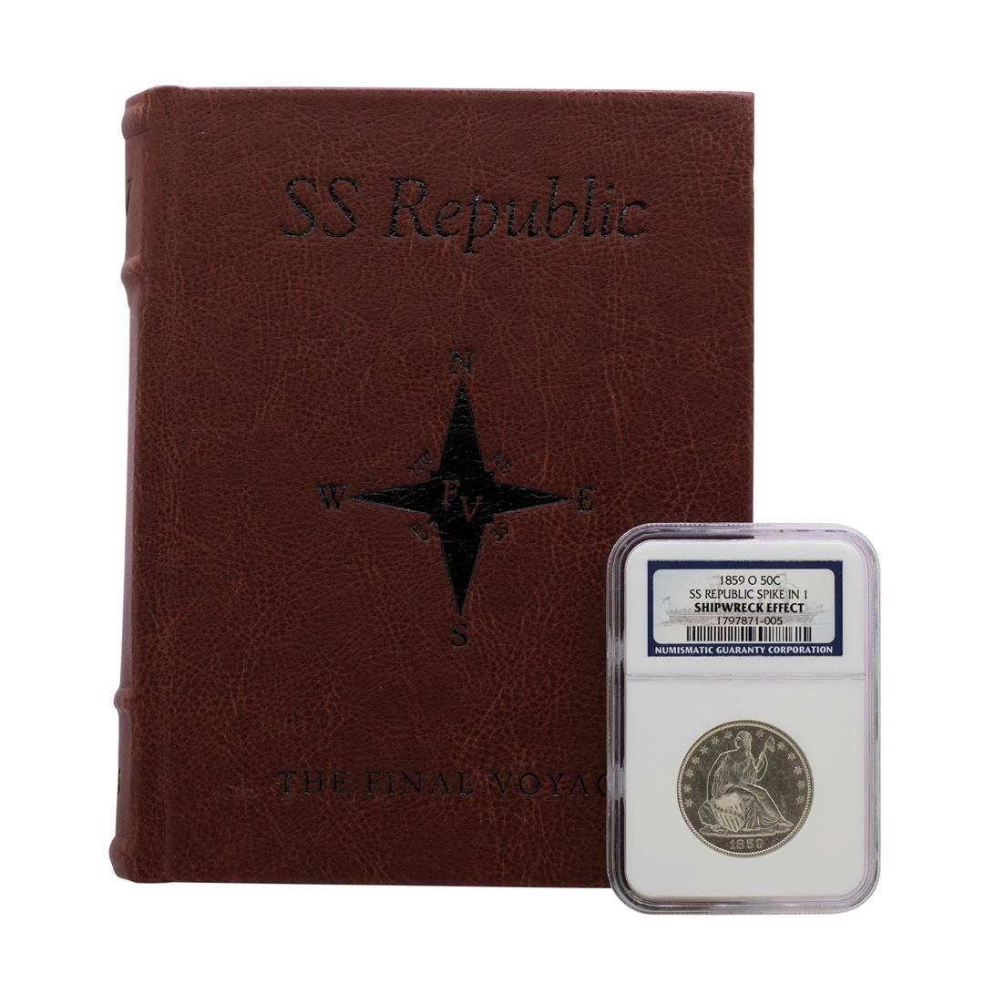 One 1859-O Spike in 1 Seated Liberty Half Dollar Coin NGC Shipwreck Effect w/ Book. NGC Certified.