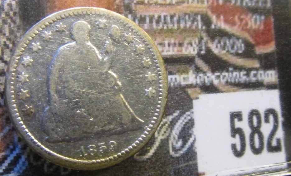 1859 O U.S. Seated Liberty Half Dime, Good.