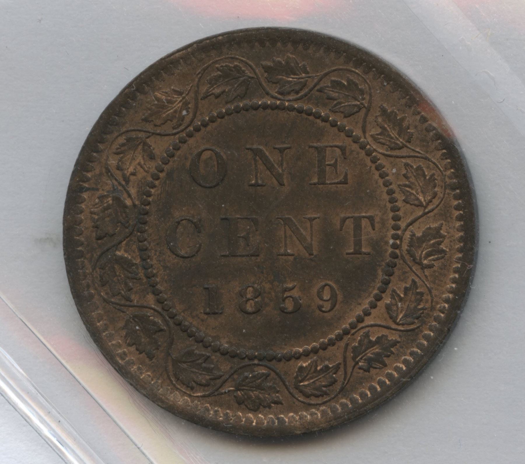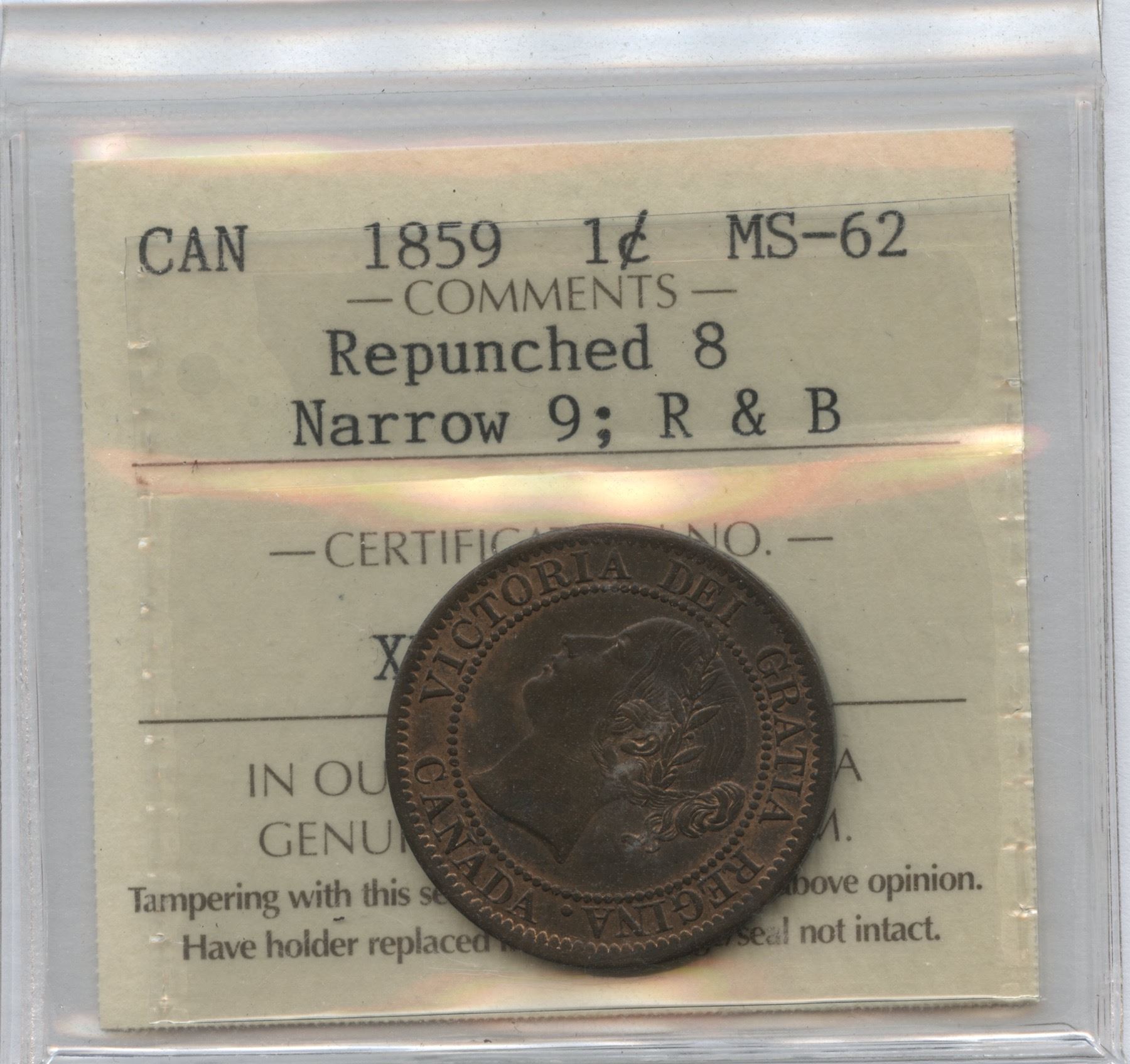 1859 One Cent - Narrow 9 Repunched 8