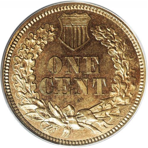 <B>1859<P1C> Indian Cent, Judd-228, Pollock-272, R.1, MS65 PCGS.</B></I> A transitional pattern with the obverse of 1859 paired with the reverse of 1860. Struck in copper-nickel with a plain edge. Suggestions of pale copper tinting overlie the otherwise honey-tan surfaces. Sharply, if not fully struck throughout, the surfaces are virtually distraction-free with eye appeal that would support an even higher grade. <BR><BR><B>Important notice:</B> Heritage usually auctions material at the rate of 200-250 lots per hour. On some occasions eBay Live bid software or the Internet may not be able to keep up with the pace of the auction. We recommend placing a realistic absentee bid now as insurance to avoid disappointment. Occasionally the auctioneer may eliminate or reject an eBay Live bid, and the auctioneer may also reopen a lot after the close of the eBay live bidding (usually because we missed an audience bid), and may reject your bid even if it shows you as the winning bidder. By bidding via eBay Live, you agree that Heritage may award the lot to another bidder at its sole discretion under the circumstances described above or any other reasonable circumstances. Since eBay bids are not shown to us until we open the lot on the floor, we treat those bids just like floor bids. In most cases the floor responds before the eBay bid is presented to us, due to Internet lag time, so for consistency we have made it a policy that floor bids are always considered first over tie eBay live bids. Also please note that all Heritage lots purchased through eBay Live carry a 20% Buyer's Premium. Please make sure you read the Terms and Conditions before you bid. This lot is being auctioned in conjunction with a live floor auction by Heritage Galleries & Auctioneers. All final auction and invoice information will be supplied by Heritage Galleries & Auctioneers, and all other information should be considered preliminary. Lot:1818 <BR><BR><B>Winning Notification and Billing:</B> After the FINAL session in this auction is complete, Heritage will send e-mail and snail mail invoices. This process normally takes several days. All final auction and invoice information will be supplied by Heritage Galleries & Auctioneers, and all other information should be considered preliminary. <BR><BR>This auction will be conducted on a live auction floor and over the Internet through eBay Live. If you choose to place an absentee bid, please take a moment to <font color='#0000ff'><u><a href='http://pages.ebay.com/liveauctions/help/before/laabsentee.html'>learn how eBay Live absentee bidding works</a></u></font><font color='#000000'>