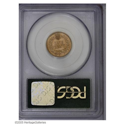 <B>1859<P1C> Indian Cent, Judd-228, Pollock-272, R.1, PR62 PCGS.</B></I> Dated 1859 but with the reverse of 1860-1909. Struck in copper-nickel with a plain edge. These exist in business strike and proof formats and are often incorporated with regular Indian cent collections. This piece has slightly subdued gray-tan fields with considerable mint luster over the devices. Limited in grade by a few minor marks on the obverse.