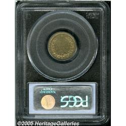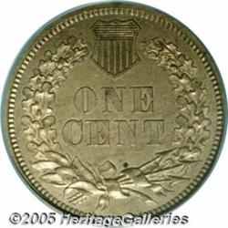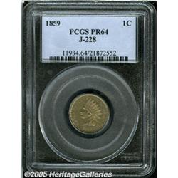 <B>1859 P1C Indian Cent, Judd-228, Pollock-272, R.1, PR64 PCGS.</B></I> Dated 1859 but with the reverse of 1860-1909. Struck in copper-nickel with a plain edge. These exist in business strike and proof formats and are often incorporated with regular Indian cent collections. This piece has slightly subdued gray-tan fields with considerable mint luster over the devices. Limited in grade by a few specks of carbon on each side.