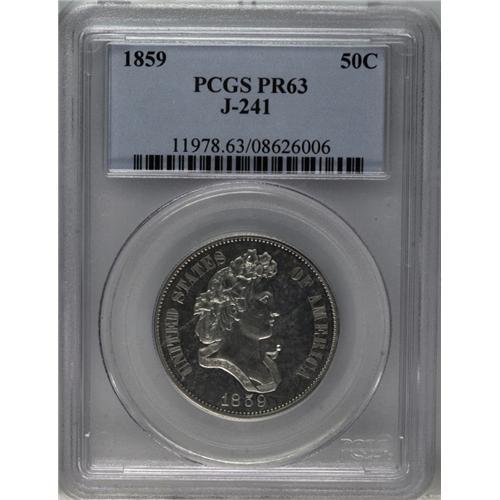 1859 P50C Half Dollar, Judd-241, Pollock-297, R.4, PR6
