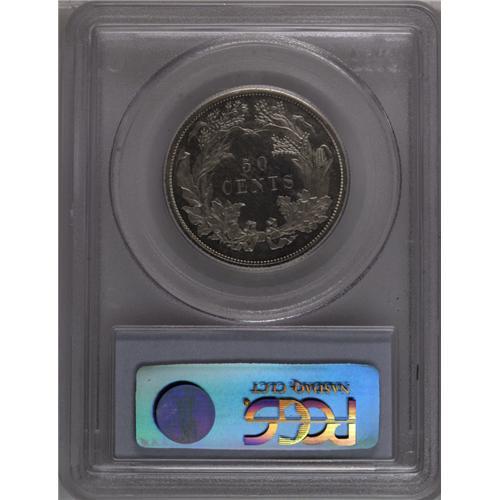 <B>1859<P50C> Half Dollar, Judd-241, Pollock-297, R.4, PR63 PCGS.</B></I> The Longacre Liberty Head design for the half dollar, also known as "French Head of Liberty." The reverse has 50 CENTS surrounded by a cereal wreath. Struck in silver with a reeded edge. Brilliant throughout and lightly cleaned. A pinscratch in the exergual area accounts for much of the grade.