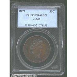 1859 P50C Half Dollar, Judd-242, Pollock-298, R.5, PR 66 Brown PCGS.