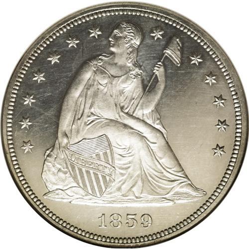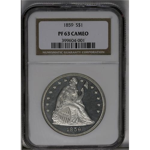 1859 S$1 PR63 Cameo NGC. Dazzling, untoned mirrors pro