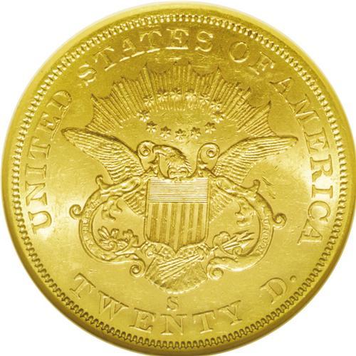 1859-S $20 AU58 NGC. Like many of its peers, this issu