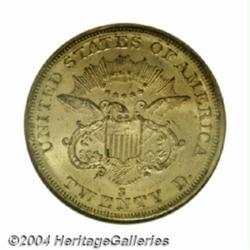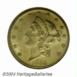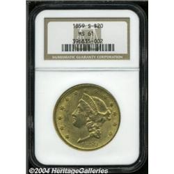<table><tbody><tr><td><table> <TR><TD width="100%"><TABLE cellSpacing=1 cellPadding=3 width="100%" border=0><TBODY><TR><TD width="100%" bgColor=#79735c><FONT face=arial color=#ffffff size=3><B>Description</B> </FONT></TD></TR><TR><TD width="100%" bgColor=#ffffff><FONT face=arial size=2><B>1859-S $20 MS61 NGC.</B></I> A scarcer issue and generally not found better than VF or XF, this is a bright example with generous portions of mint luster remaining. Both sides have a rather scuffy appearance, but bidder interest should still be high, based upon the rarity of this issue in Mint State. Population: 10 in 61, 8 finer (11/03).<BR><I>From a Magnificent Collection of Double Eagles.</B></I> </FONT></TD></TR></TBODY></TABLE></TD></TR></TBODY></TABLE><BR><A name=PricesRealized></A><TABLE cellSpacing=0 cellPadding=0 width="100%" bgColor=#000000 border=0><TBODY><TR><TD width="100%"><TABLE cellSpacing=1 cellPadding=3 width="100%" border=0><TBODY><TR><TD width="100%" bgColor=#79735c><A name=PR><FONT face=arial color=#ffffff size=3><B>Previous Prices from Heritage Auctions</B> </FONT></A></TD></TR><TR><TD bgColor=#f6f6ed><TABLE cellSpacing=0 cellPadding=0 width="100%" border=1><TBODY><TR><TD align=middle width="33%"><B>Date</B></TD><TD align=middle width="33%"><B>Service</B></TD><TD align=middle width="33%"><B>Price</B></TD></TR><TR bgColor=whitesmoke><TD width="33%"><B>11/17/2001</B></TD><TD width="33%">PCGS</TD><TD width="33%">$4,945.00</TD></TR><TR bgColor=whitesmoke><TD width="33%"><B>01/01/1994</B></TD><TD width="33%">PCGS</TD><TD width="33%">$4,730.00</TD></TR></TBODY></TABLE></TD></TR><TR><TD bgColor=#ffffff><FONT face=arial size=1 ?>PLEASE NOTE: All prices realized reflect the final hammer price PLUS the buyer's premium in auctions that charge a buyer's premium. Each item has a notation at the top of the listing indicating whether that lot included a buyer's premium. Example: A item that sells with a final hammer price of $100 and a 20% buyer's premium will display with a price realized of $120. All information listed is intended to be as accurate as possible, but errors are possible. Please use this guide carefully and inform us of any inaccuracies. </FONT></TD></TR></TBODY></TABLE></TD></TR></TBODY></TABLE><BR><TABLE cellSpacing=0 cellPadding=0 width="100%" bgColor=#000000 border=0><TBODY><TR><TD width="100%"><TABLE cellSpacing=1 cellPadding=3 width="100%" border=0><TBODY><TR><TD width="100%" bgColor=#79735c colSpan=6><FONT face=arial color=#ffffff size=3><B>Price Guide*</B> </FONT></TD></TR><TR bgColor=#f6f6ed><TD align=middle><B>Grade</B> </TD><TD align=middle><B>Coin World<BR>(Trends)</B> </TD><TD align=middle><B>Numismedia<BR>Retail</B> </TD><TD align=middle><B>Numismedia<BR>Wholesale</B> </TD><TD align=middle><B>Coin<BR>Universe</B> </TD><TD align=middle><B>Heritage<BR>Value Index</B> </TD></TR><TR bgColor=#ffffff><TD align=middle>60</TD><TD align=right>$6,000.00</TD><TD align=right>---</TD><TD align=right>$4,350.00</TD><TD align=right>$4,750.00</TD><TD align=right>$3,588.33</TD></TR><TR style="FONT-WEIGHT: bold" bgColor=#cccfdd><TD align=middle>61</TD><TD align=right>---</TD><TD align=right>---</TD><TD align=right>$5,125.00</TD><TD align=right>$5,500.00</TD><TD align=right>$4,608.33</TD></TR><TR bgColor=#ffffff><TD align=middle>62</TD><TD align=right>$12,000.00</TD><TD align=right>---</TD><TD align=right>$9,525.00</TD><TD align=right>$11,500.00</TD><TD align=right>$6,853.33</TD></TR><TR bgColor=#ffffff><TD colSpan=6><FONT size=1>*All information listed is intended to be as accurate as possible, but errors are possible. No item may be returned or refused based on this information which is provided as a service to our customers. You should contact each pricing source directly to determine the accuracy of this information. </FONT></TD></TR></TBODY></TABLE></TD></TR></TBODY></TABLE><BR><TABLE cellSpacing=0 cellPadding=0 width="100%" bgColor=#000000 border=0><TBODY><TR><TD width="100%"><TABLE cellSpacing=1 cellPadding=3 width="100%" border=0><TBODY><TR><TD width="100%" bgColor=#79735c><FONT face=arial color=#ffffff size=3><B>Population Guide</B> </FONT></TD></TR><TR bgColor=#ffffff><TD align=middle><!-- Begin Output of Population Grid--><TABLE cellSpacing=0 cellPadding=0 width="100%" border=0><TBODY><TR><TD vAlign=center><TABLE cellSpacing=0 width="100%" border=1 cellsadding="3"><TBODY><TR><TD vAlign=center><TABLE cellSpacing=0 cellPadding=3 width="100%" border=1><TBODY><TR><TD vAlign=center align=middle bgColor=#f0f1e8 colSpan=2 <CENTER><FONT face=Arial size=2><B>PCGS Pop </B></FONT><CENTER></CENTER></TD><TD vAlign=center align=middle bgColor=#f0f1e8 colSpan=2><CENTER><FONT face=Arial size=2><B>NGC Pop</B></CENTER></FONT></TD></TR><TR><TD vAlign=center><FONT face=Arial size=2>(61)</FONT> </TD><TD vAlign=center align=right><FONT face=Arial size=2>13</FONT> </TD><TD vAlign=center><FONT face=Arial size=2>(61)</FONT> </TD><TD vAlign=center align=right><FONT face=Arial size=2>10</FONT> </TD></TR><TR><TD vAlign=center><FONT face=Arial size=2>(>61)</FONT> </TD><TD vAlign=center align=right><FONT face=Arial size=2>14</FONT> </TD><TD vAlign=center><FONT face=Arial size=2>(>61)</FONT> </TD><TD vAlign=center align=right><FONT face=Arial size=2>8</FONT> </TD></TR></TBODY></TABLE></TD></TR></TBODY></TABLE></TD></TR></TBODY></TABLE><!-- End Output of Population Grid--></TD></TR></TBODY></TABLE></TD></TR></TBODY></TABLE><BR><TABLE cellSpacing=0 cellPadding=0 width="100%" bgColor=#000000 border=0><TBODY><TR> <font color='#000000'><span style='background-color: #FFFFFF'><td bgcolor='#FFFFFE'> Important notice: Heritage usually auctions material at the rate of 200-250 lots per hour. On some occasions eBay Live bid software or the Internet may not be able to keep up with the pace of the auction. We recommend placing a realistic absentee bid now as insurance to avoid disappointment. Occasionally the auctioneer may eliminate or reject an eBay Live bid, and the auctioneer may also reopen a lot after the close o