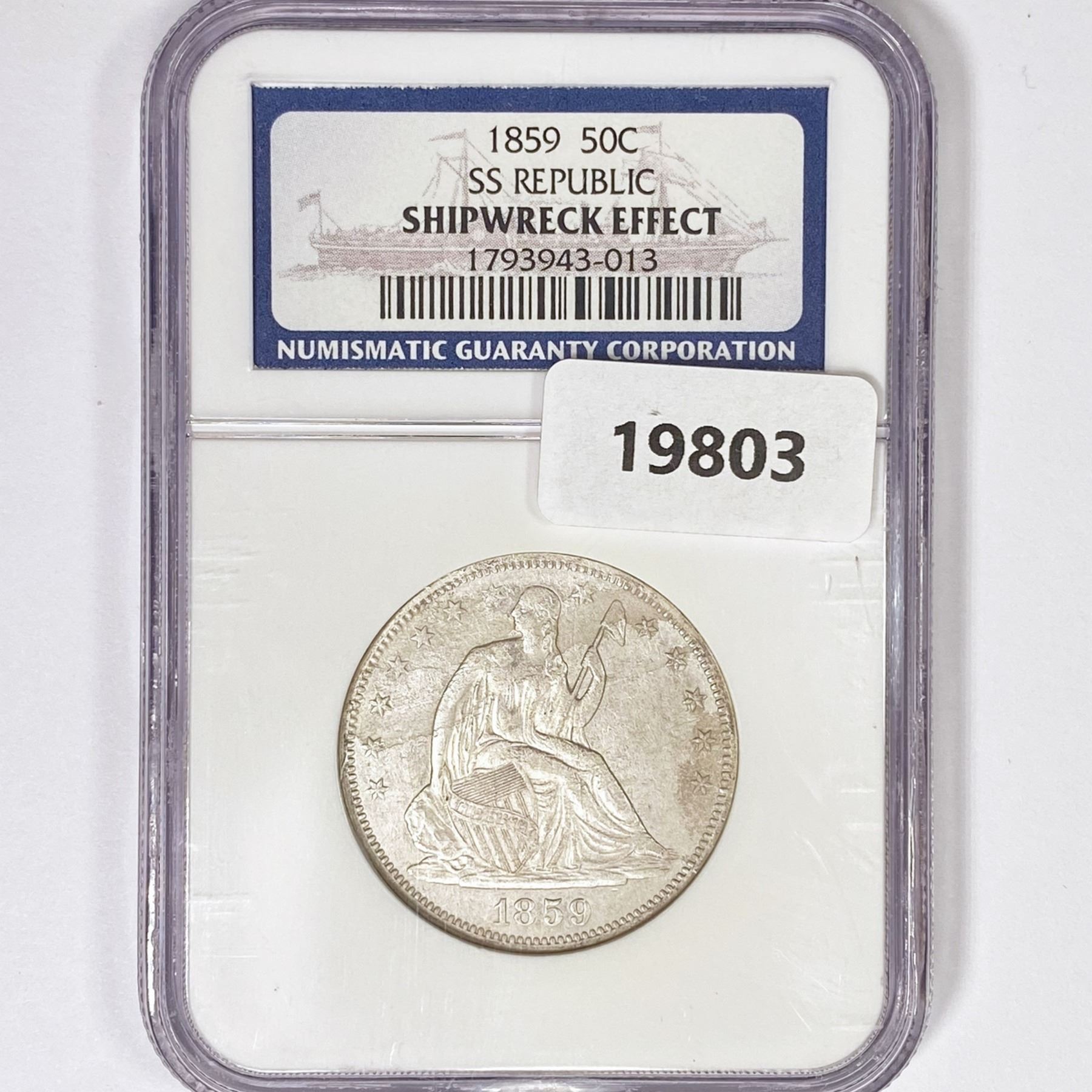 1859 Seated Lib. 50C NGC Shipwreck SS Rep Bx Set
